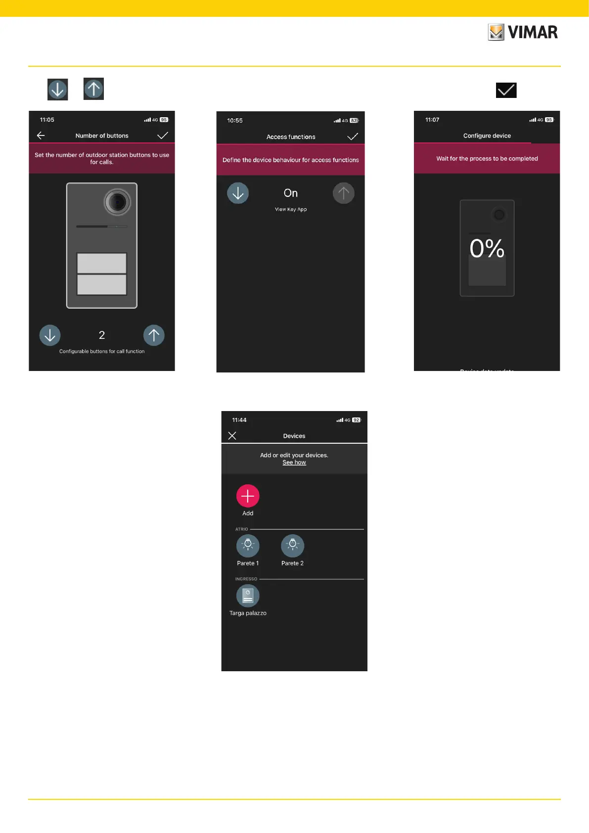• Use and to set the number of push buttons making up the entrance panel and define the behaviour for the access function; confirm with .