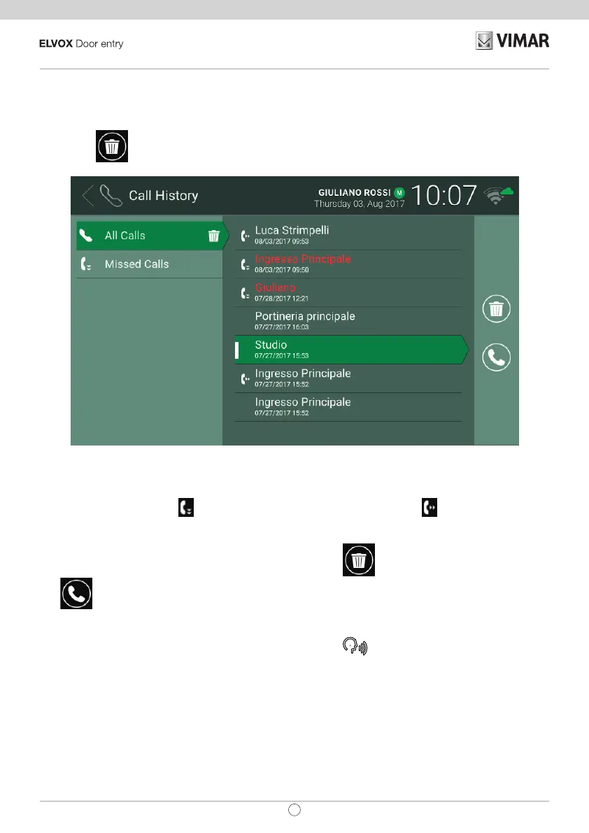icon can be used to respectively delete the history of all calls, or to delete missed calls only.