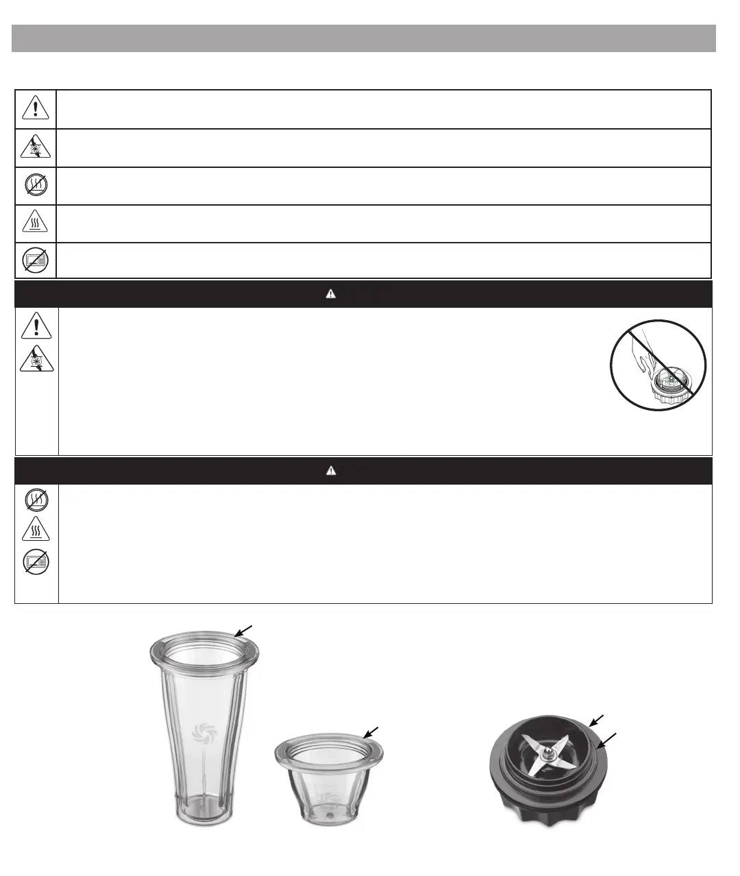 To avoid damage or personal injury, DO NOT use the cups (including the blade base or lids) in the microwave.