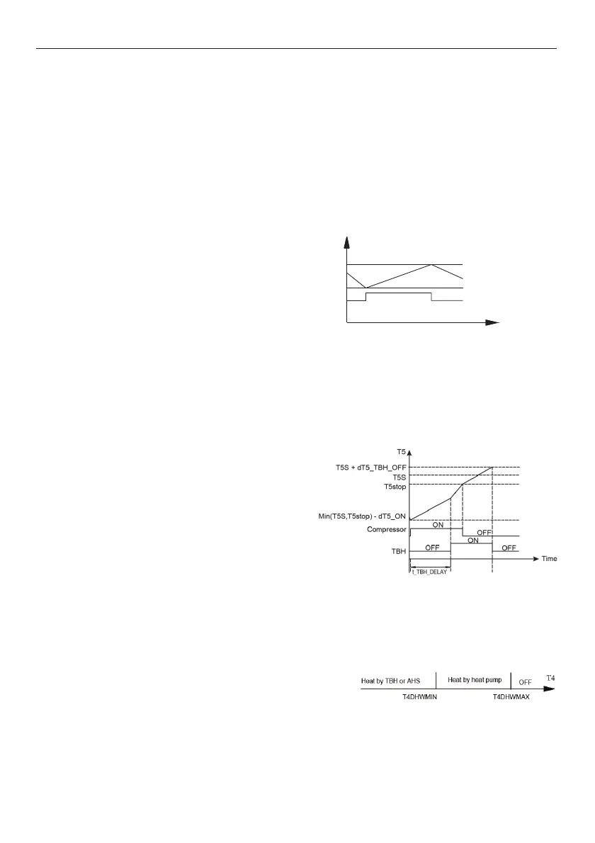 turned on. If T5 reaches T5stop, the heat pump stops but the