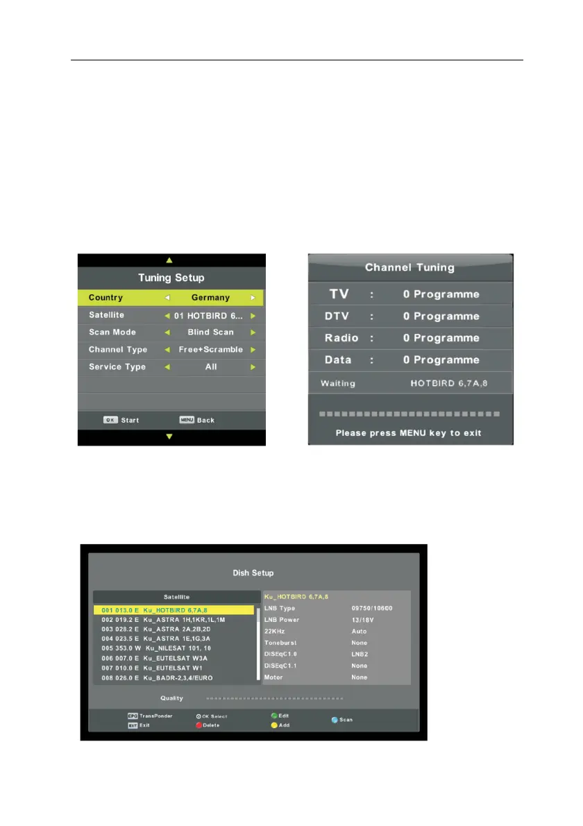 Pritisnite tastere ▼ / ▲ za odabir Dish Setup (Podešavanje Sat Antene), tada