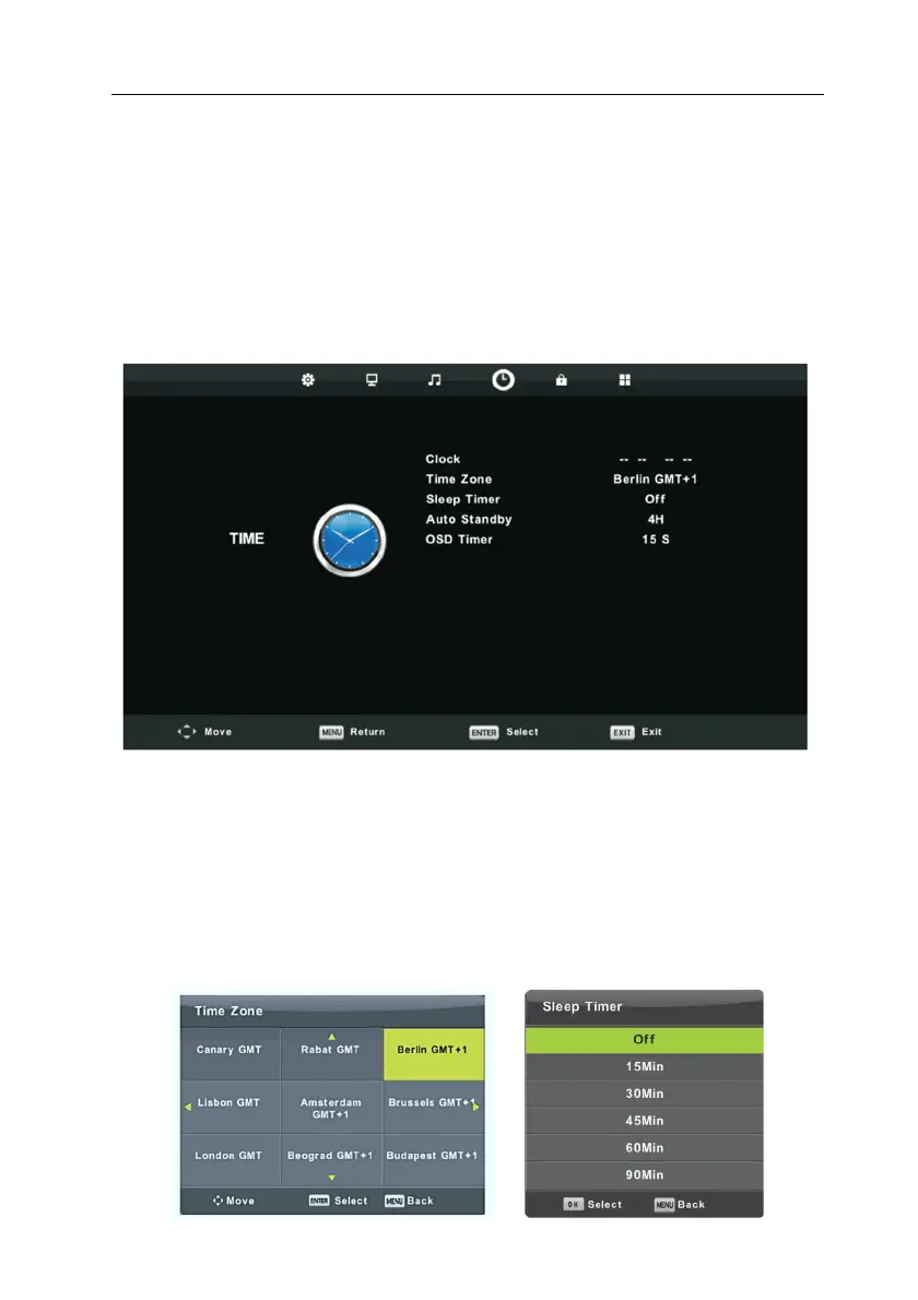 Притиснете ◄ / ► за да одберете TIME за главното мени.
