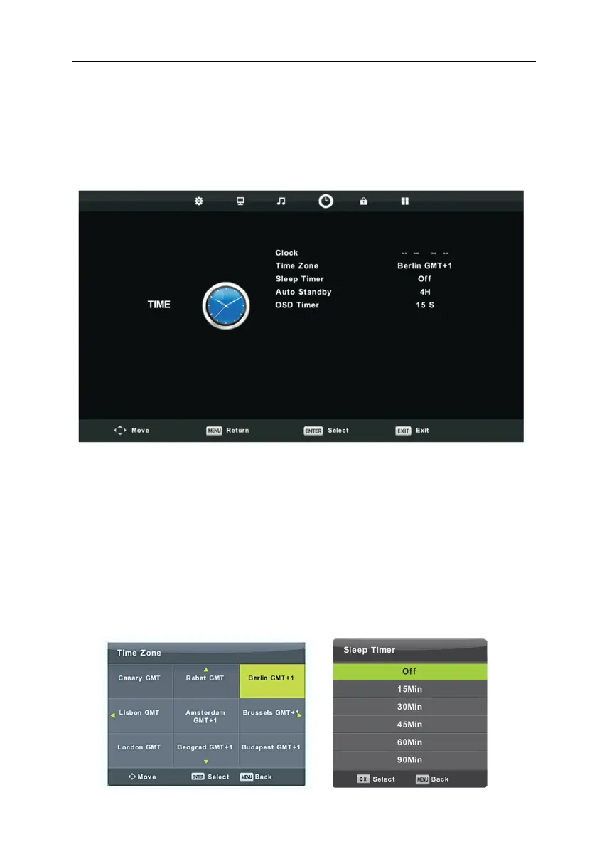 2. Shtypni ◄ / ► butonin për të zgjedhur TIME in the menynë kryesore.