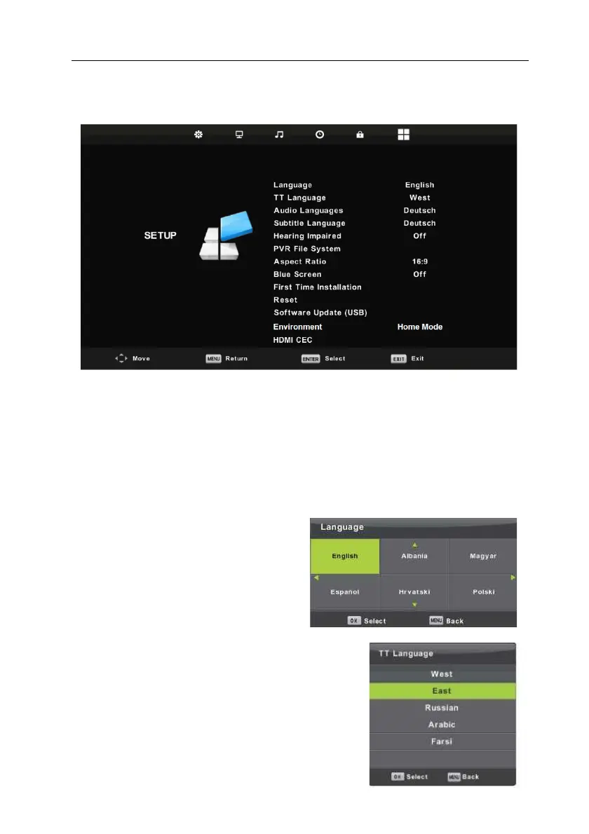 Press ◄ / ► button to select SETUP sub-menu in the main menu.