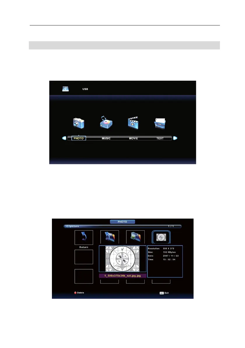 Note: Before operating Media menu,Plug in USB device,then press SOURCE