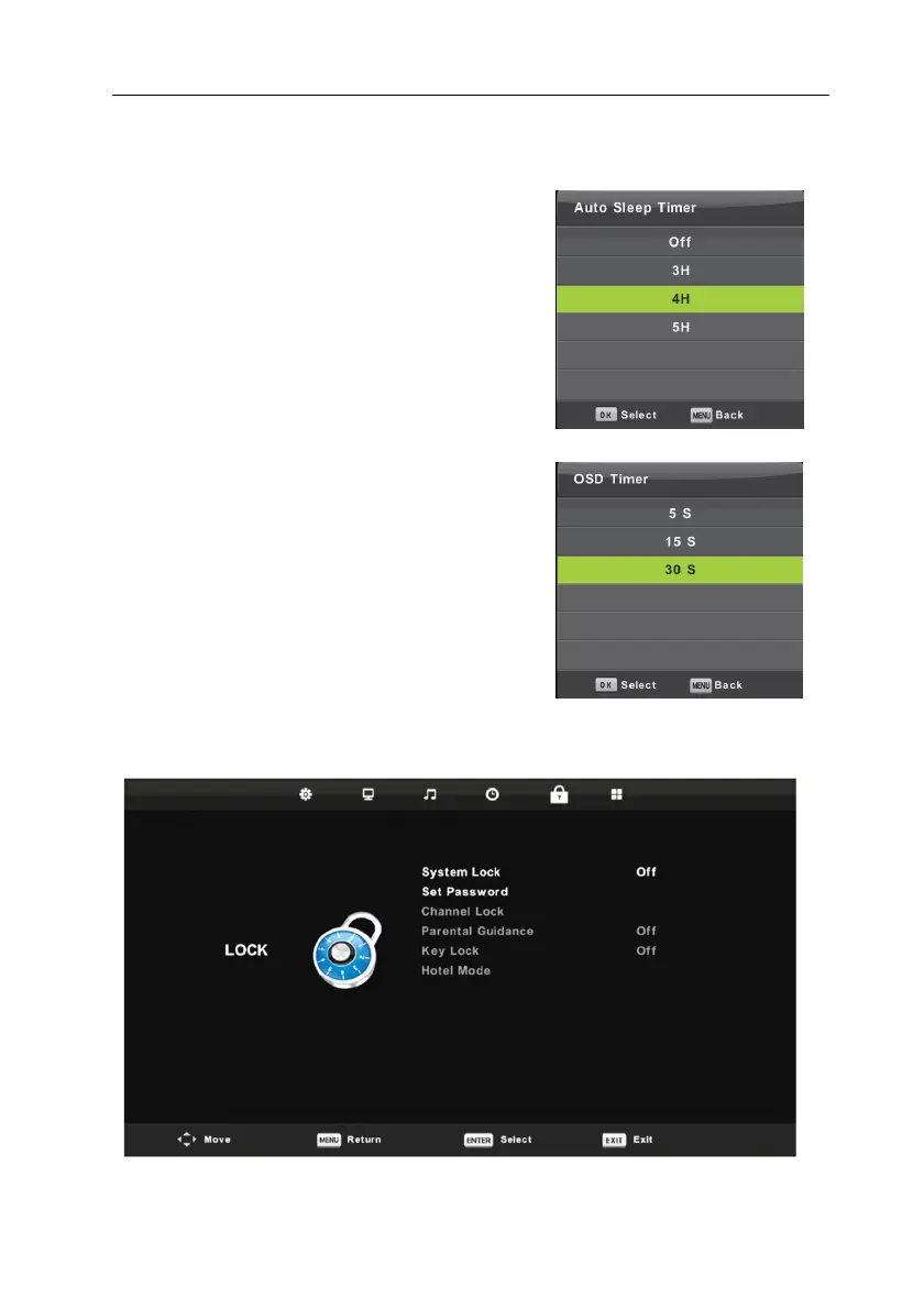 2. Pritisnite tastere ◄ / ► kako biste izabrali podmeni LOCK