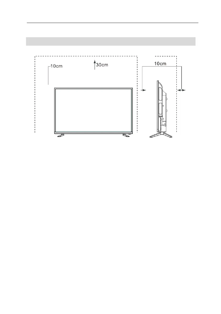 Postavite TV prijamnik na čvrstu i ravnu površinu ostavljajući prostor od najmanje