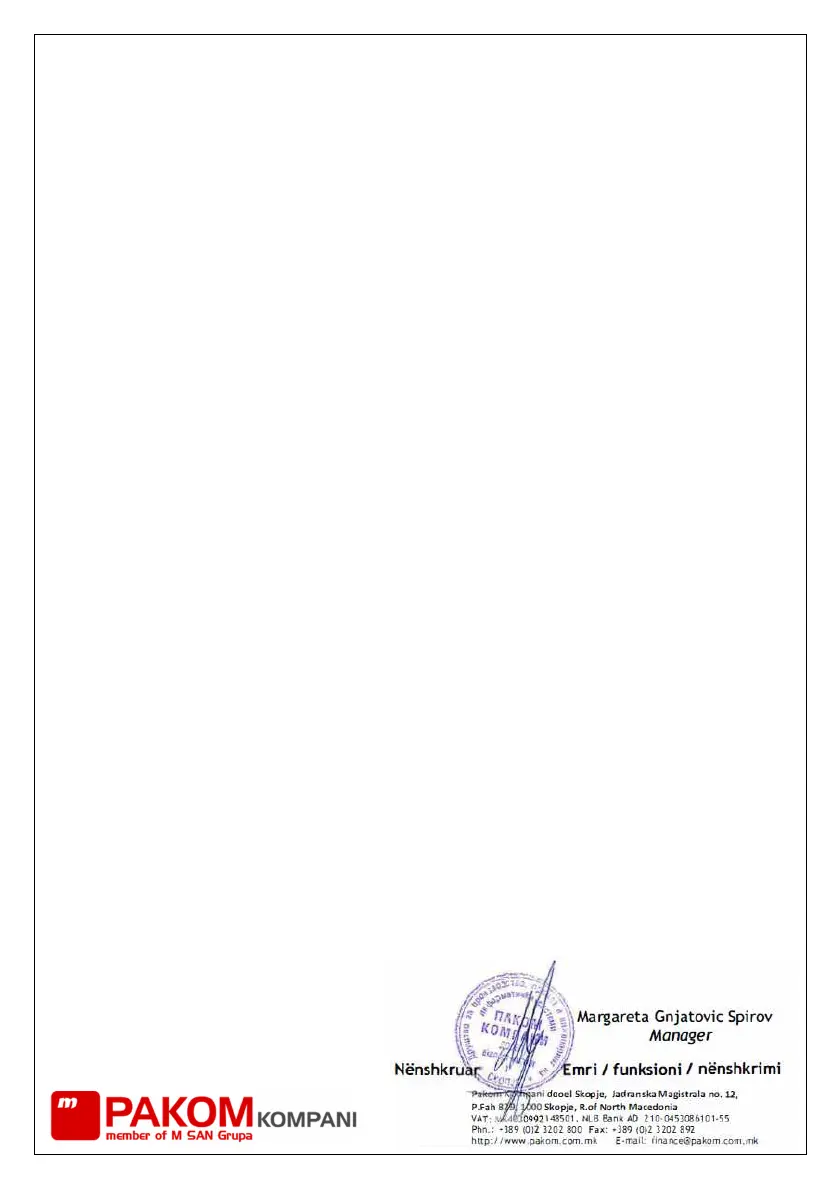 Objekti i deklaratës në fjalë është në përputhje me legjislacionin përkatës të Unionit për