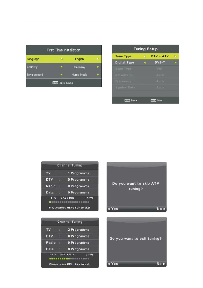 Menu dhe shigjetën e majtë për të kapërcyer rregullimin DTV.