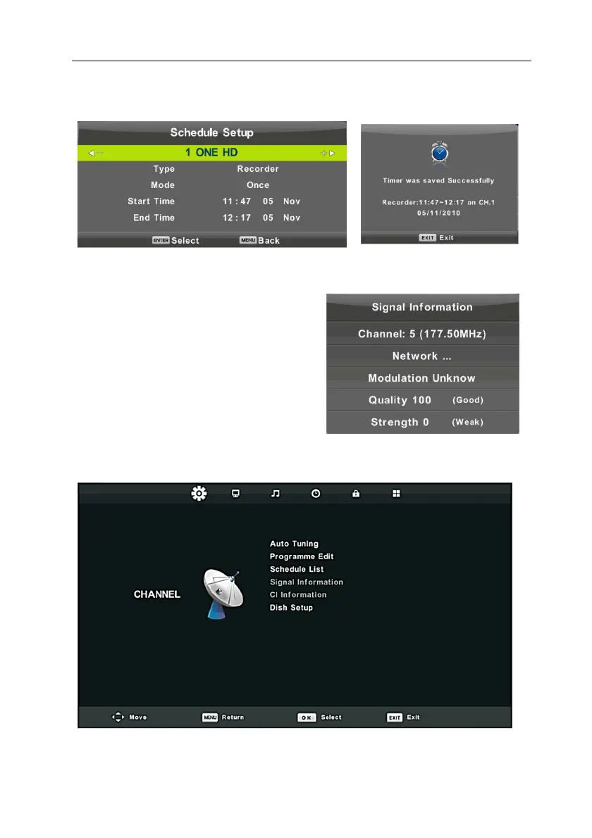 Meni CHANNEL kada je odabran IZVOR DVB-S (Satelit)
