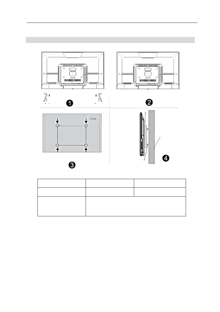 • Prije postavljanja TV prijamnika na zid, obavezno uklonite nogice ili stalak.