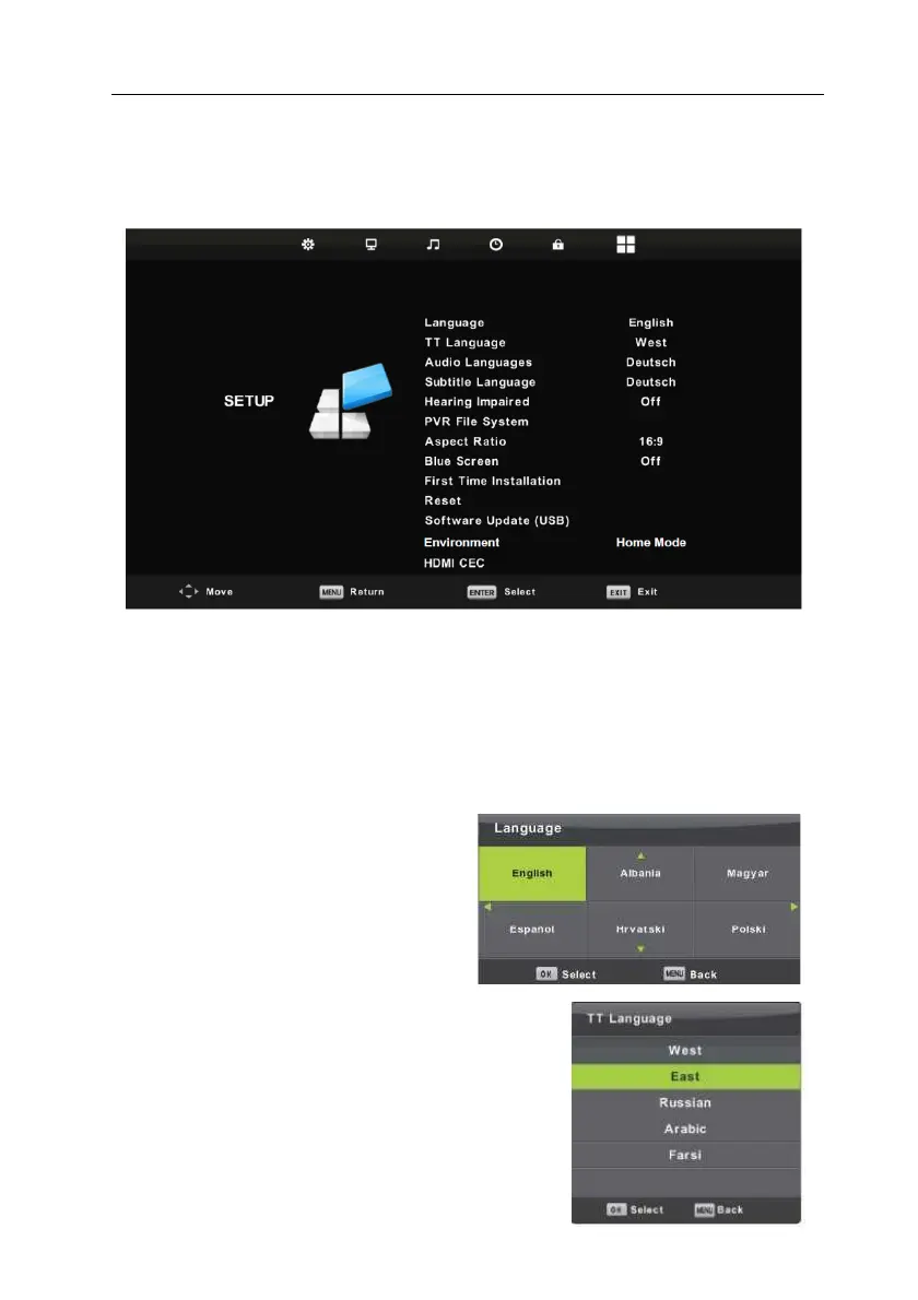 2. Pritisnite tipke ◄ / ► kako bi odabrali podizbornik SETUP (POSTAVKE) u