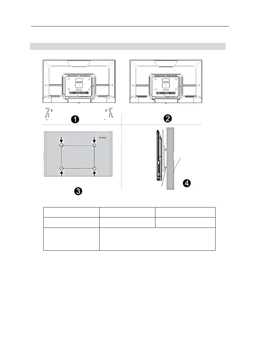 • Pre postavljanja TV prijemnika na zid, obavezno uklonite nogice ili stalak.