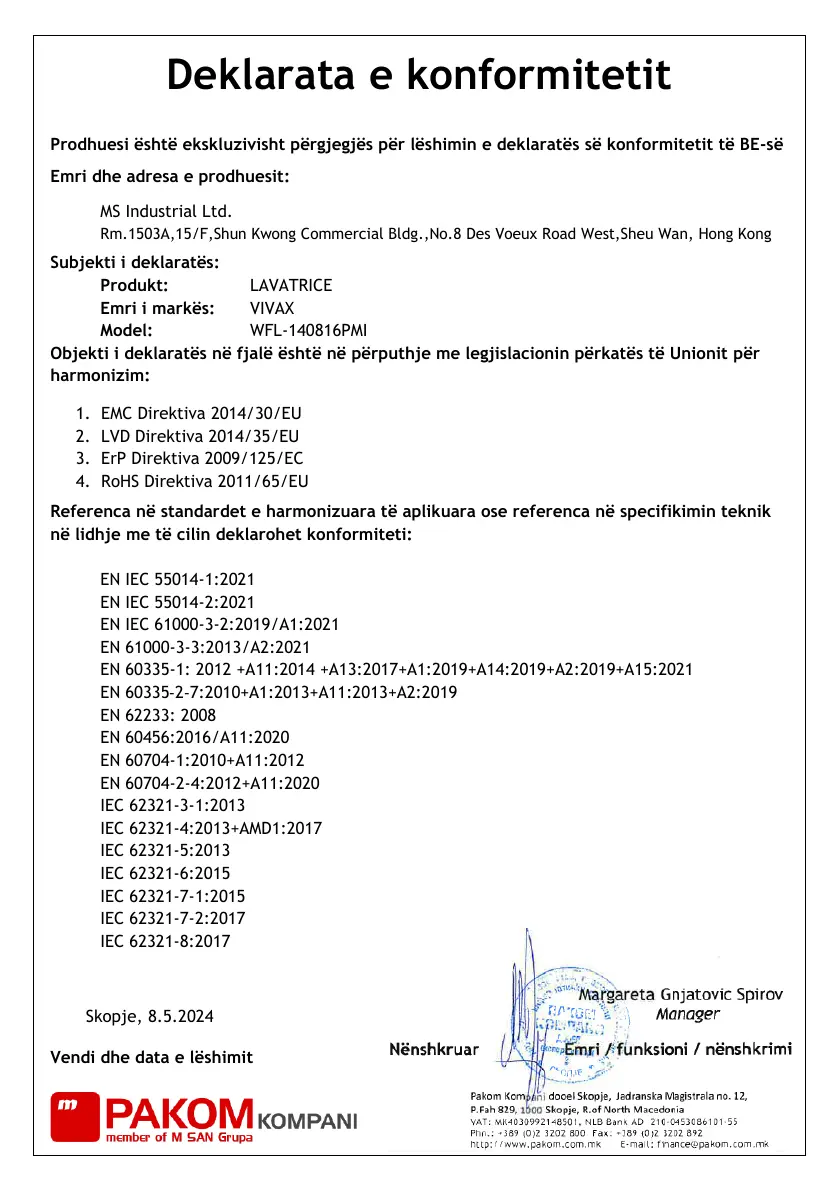 Prodhuesi është ekskluzivisht përgjegjës për lëshimin e deklaratës së konformitetit të BE-së