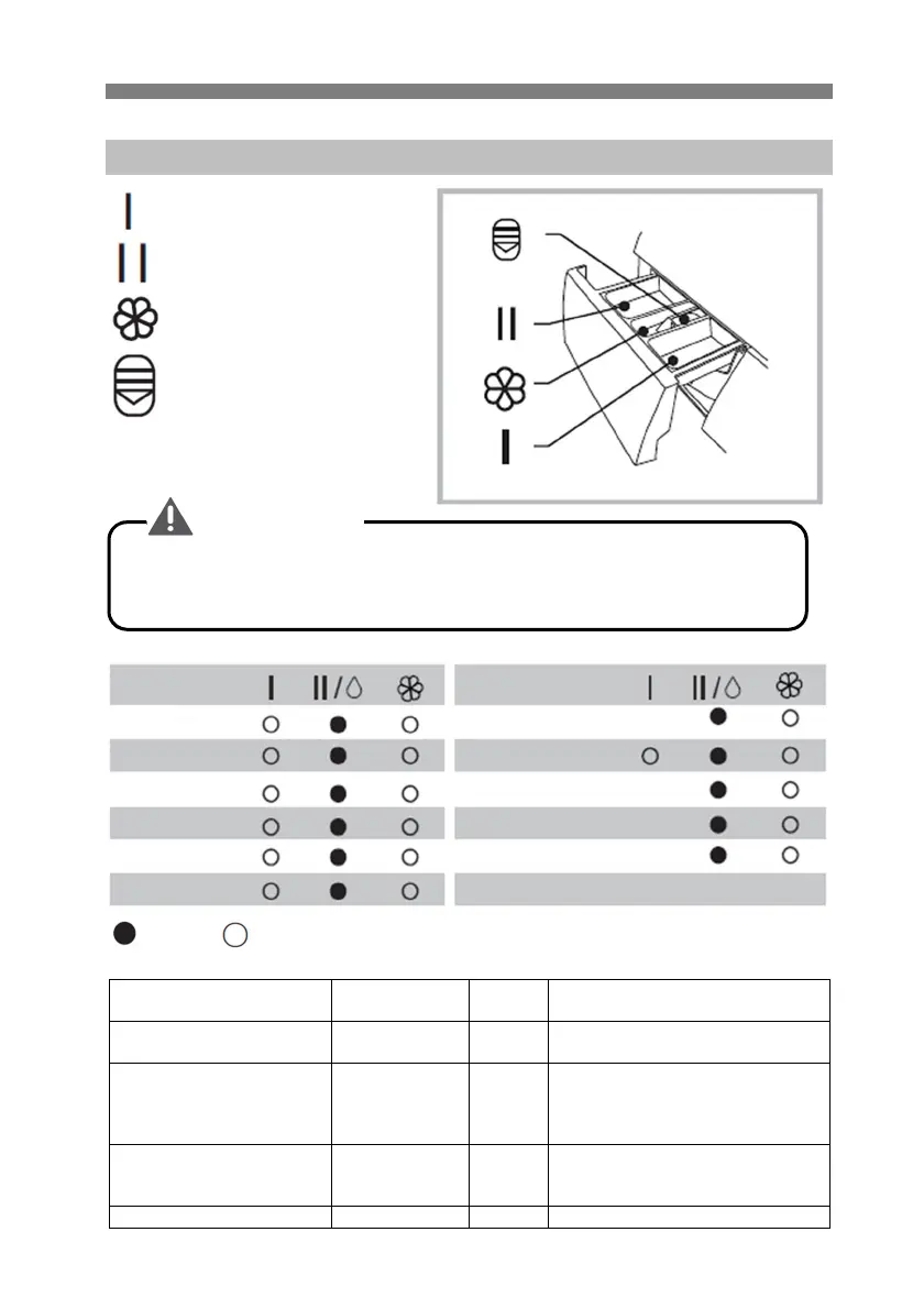 Detergent je treba dodati samo v predel I, potem ko izberete funkcijo