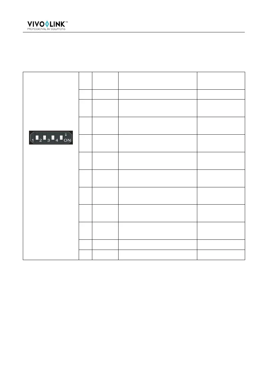 The rear panel boasts a 4-pin DIP switch to set the predefined EDID. The ten types of