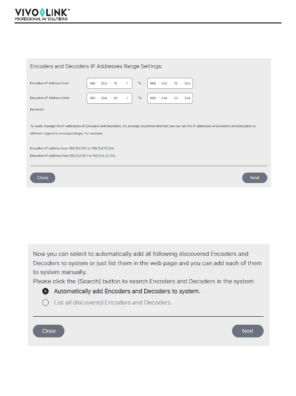 On this interface, you can set the IP address range of Encoders and