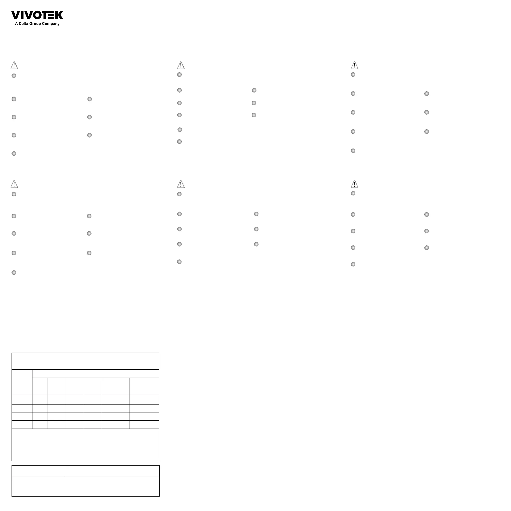 Güç adaptörleri için VIVOTEK'in yetkili bayileriyle temasa geçin.