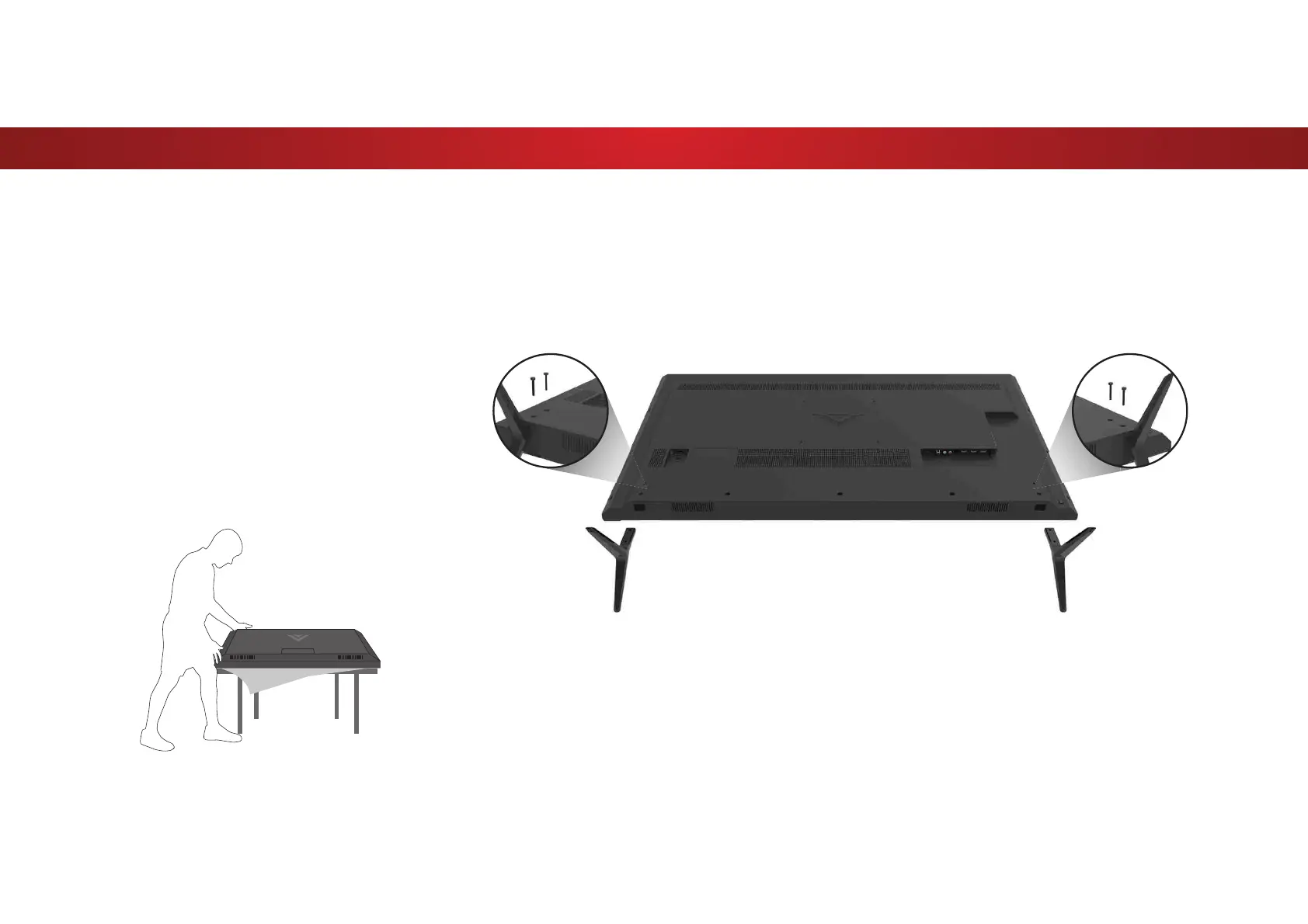 1. Insert the left and right stands into the base of the TV (the stands are identical).