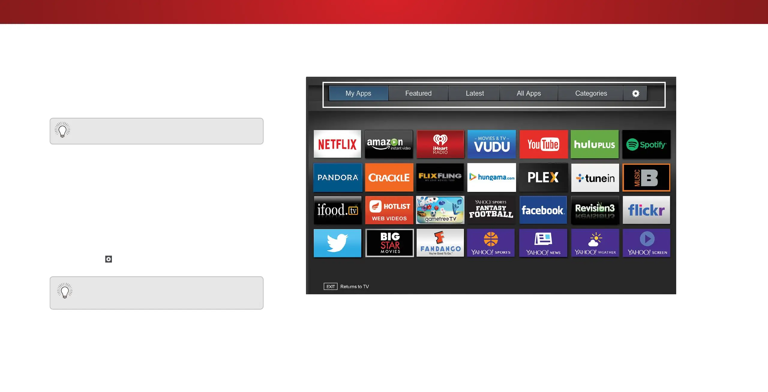 are already installed on your TV. The Apps on the rst page are