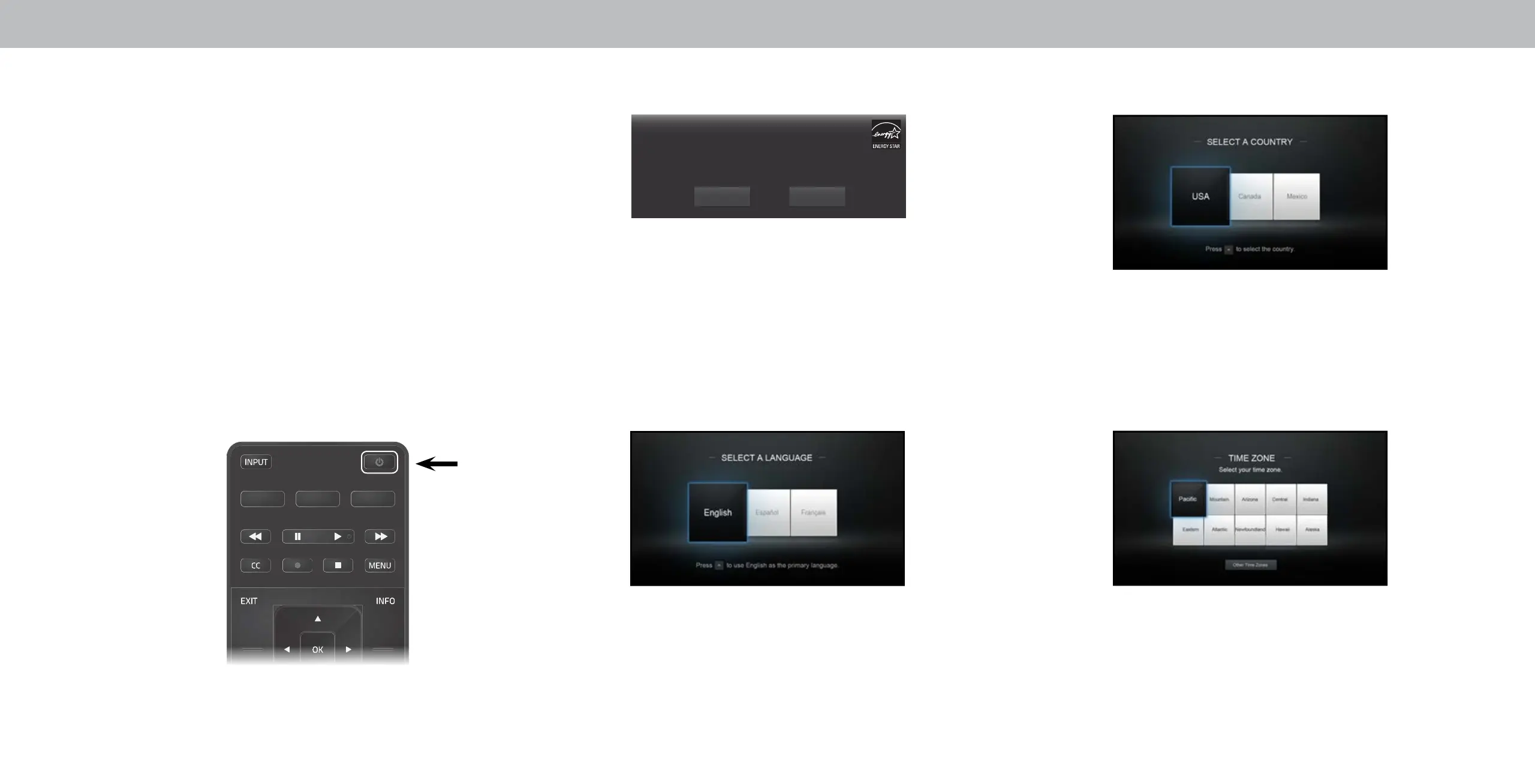 Press the Power button on the remote. The TV