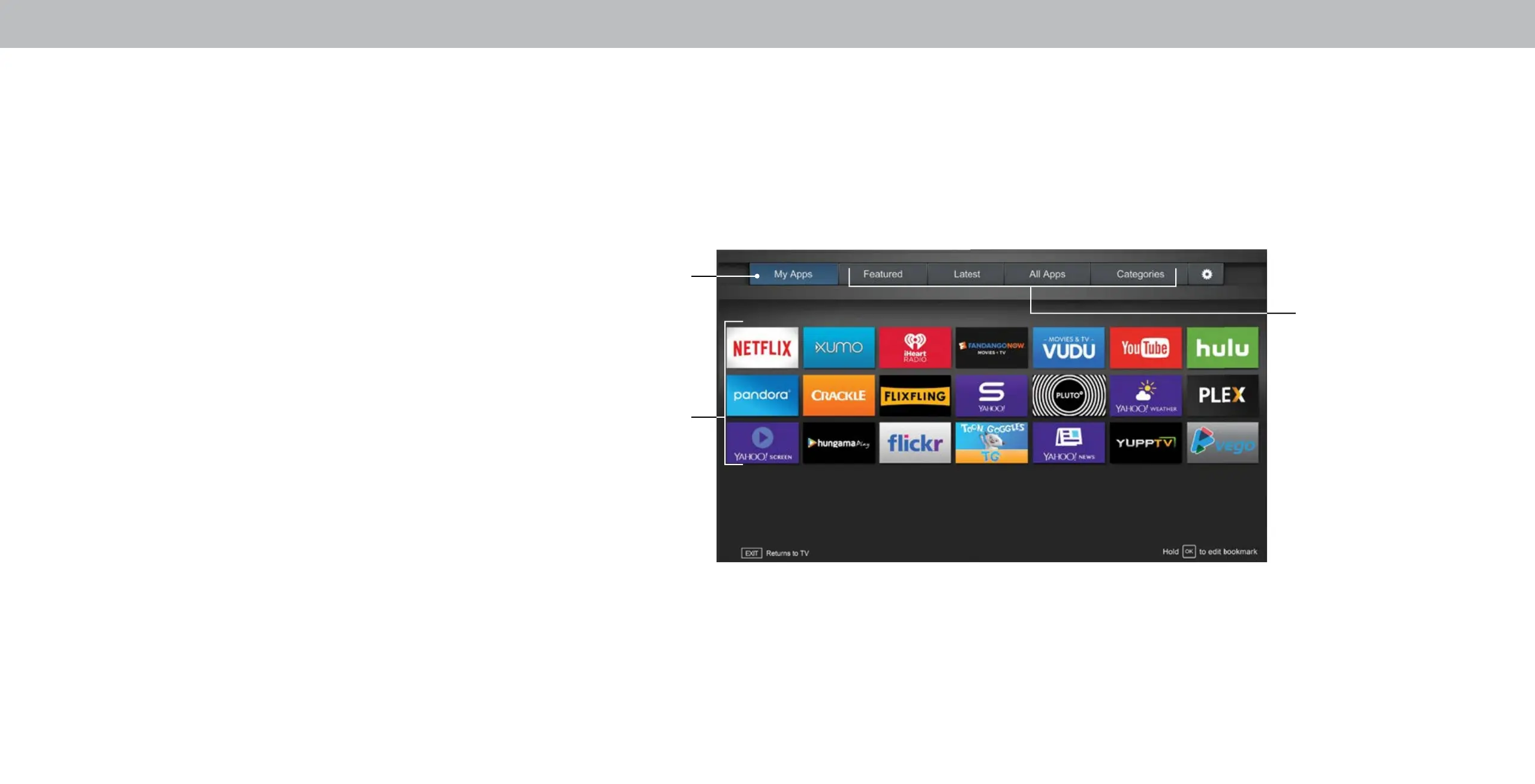 2. Highlight an App by using the Arrow buttons on the remote.