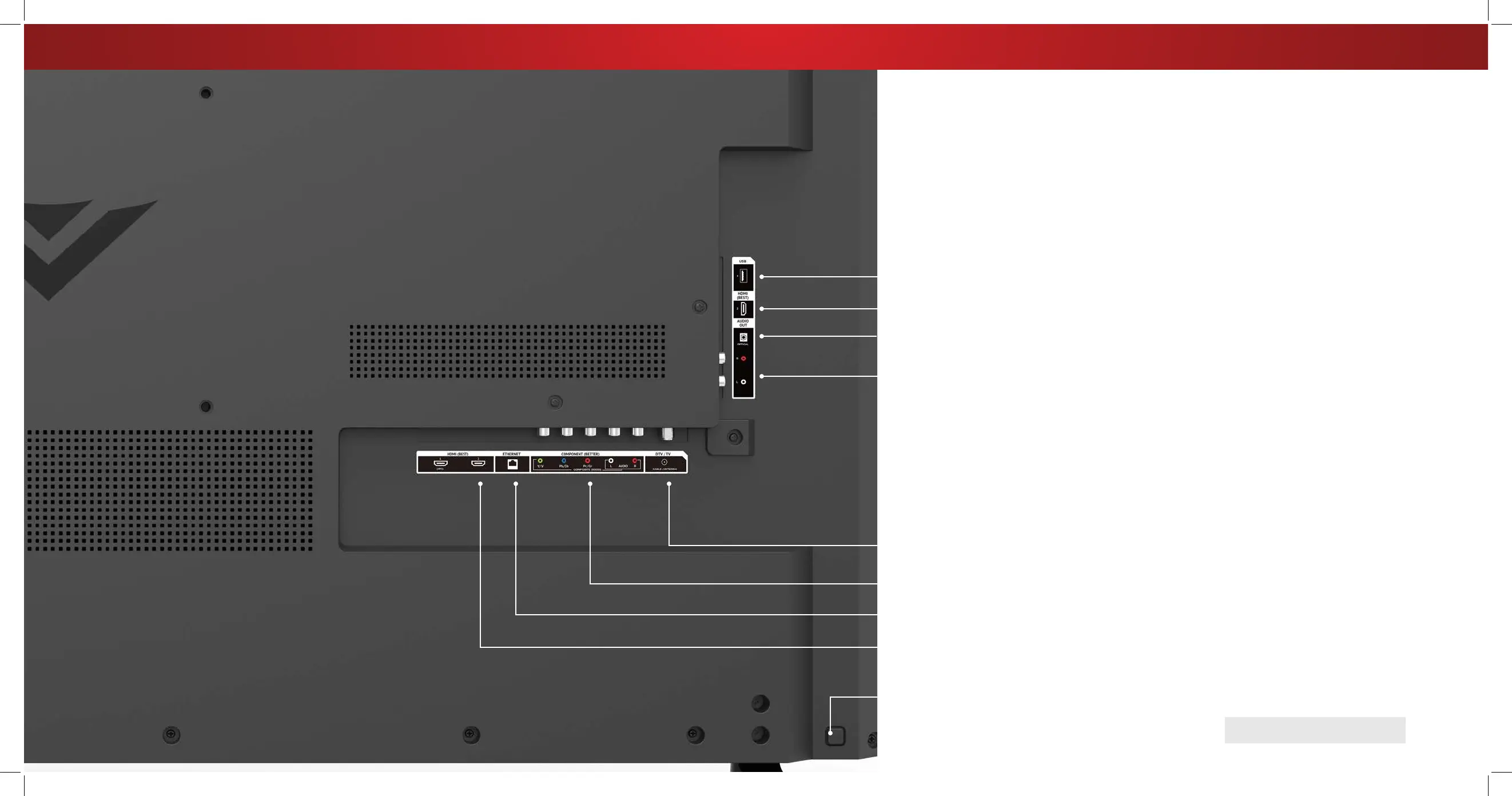 Stereo Audio Out - Connect an RCA audio device, such as sound bar.