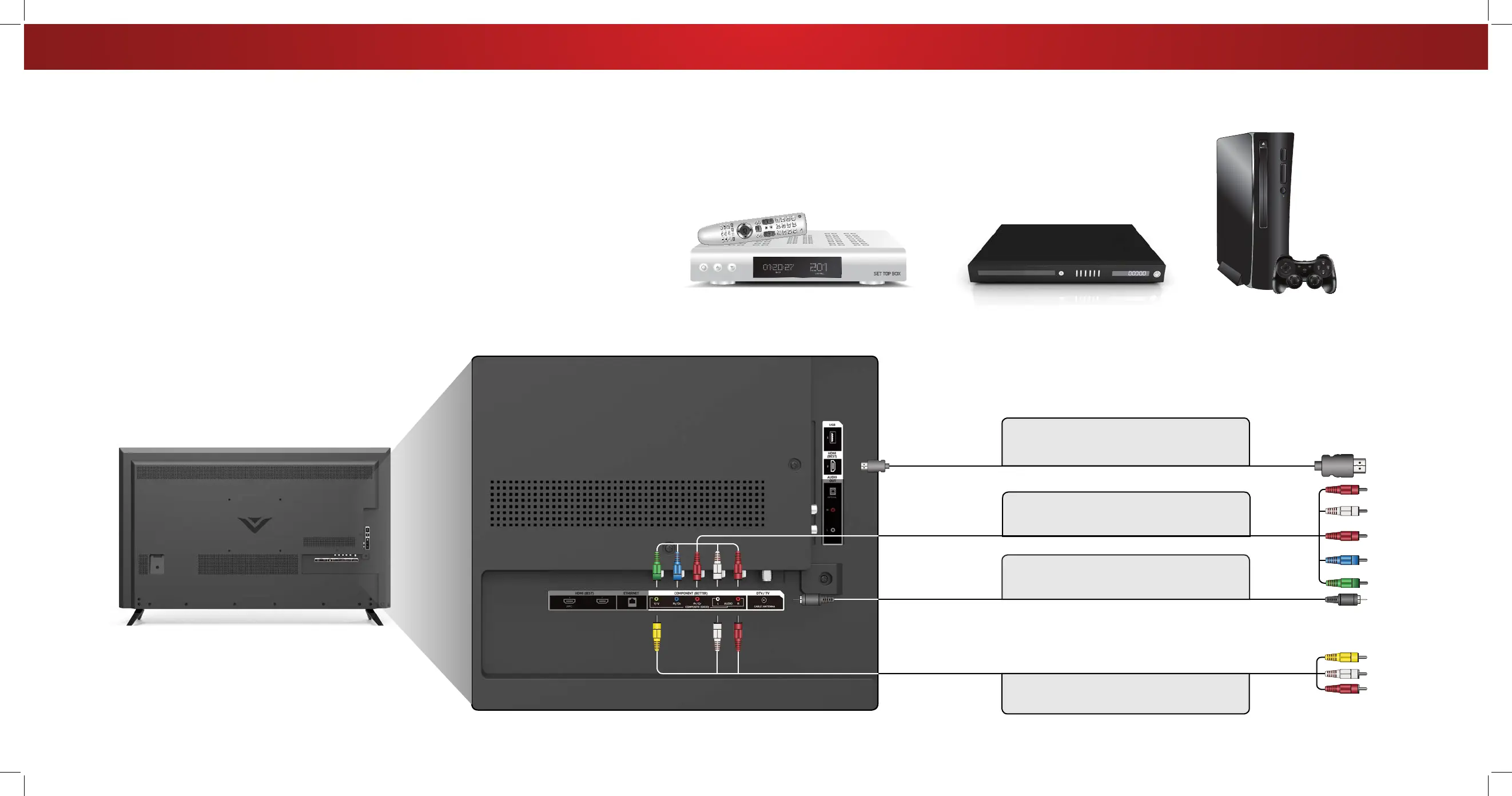3. Connect the appropriate cable (not included) to the TV and the