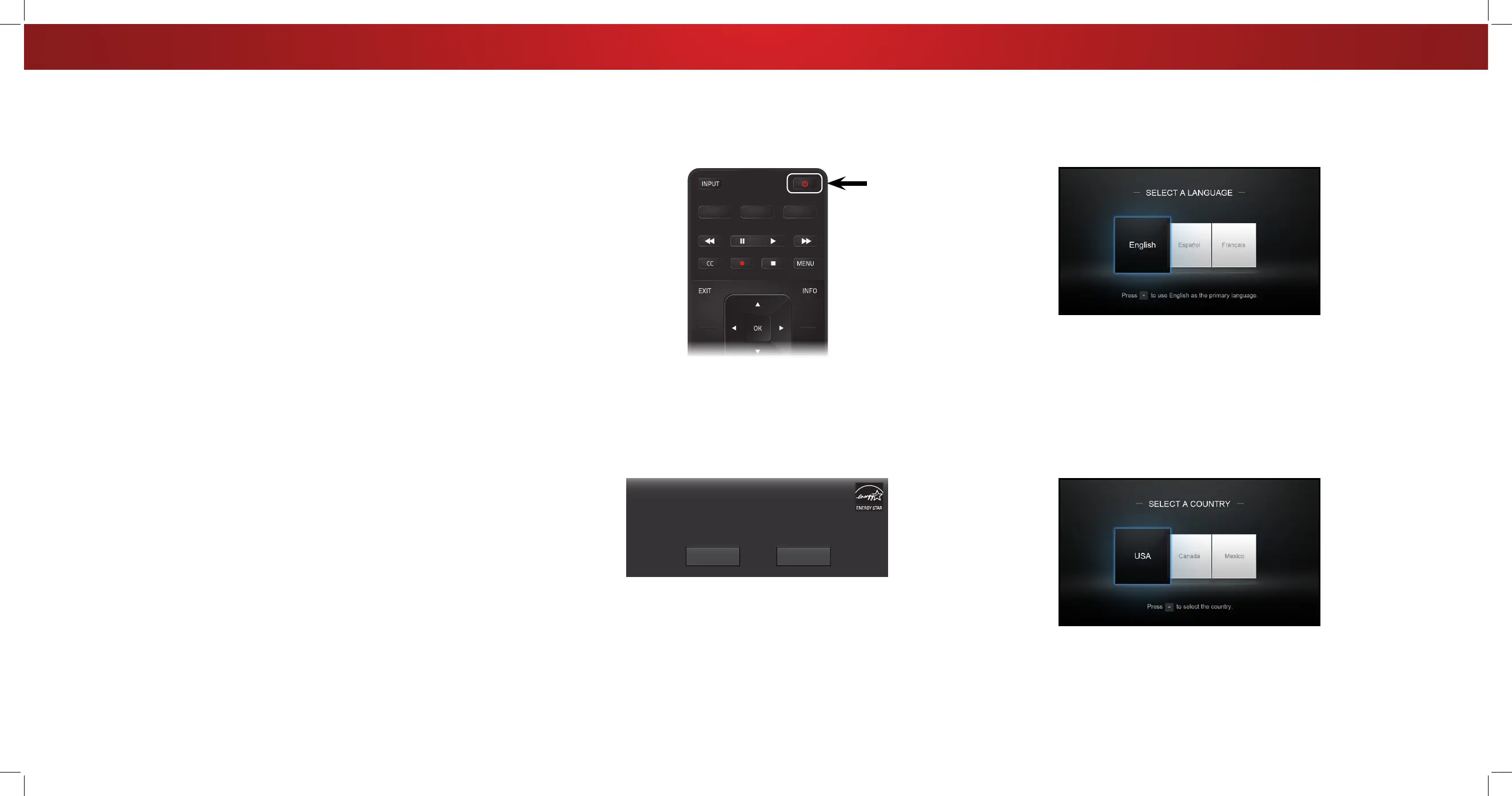 Press the Power button on the remote. The TV