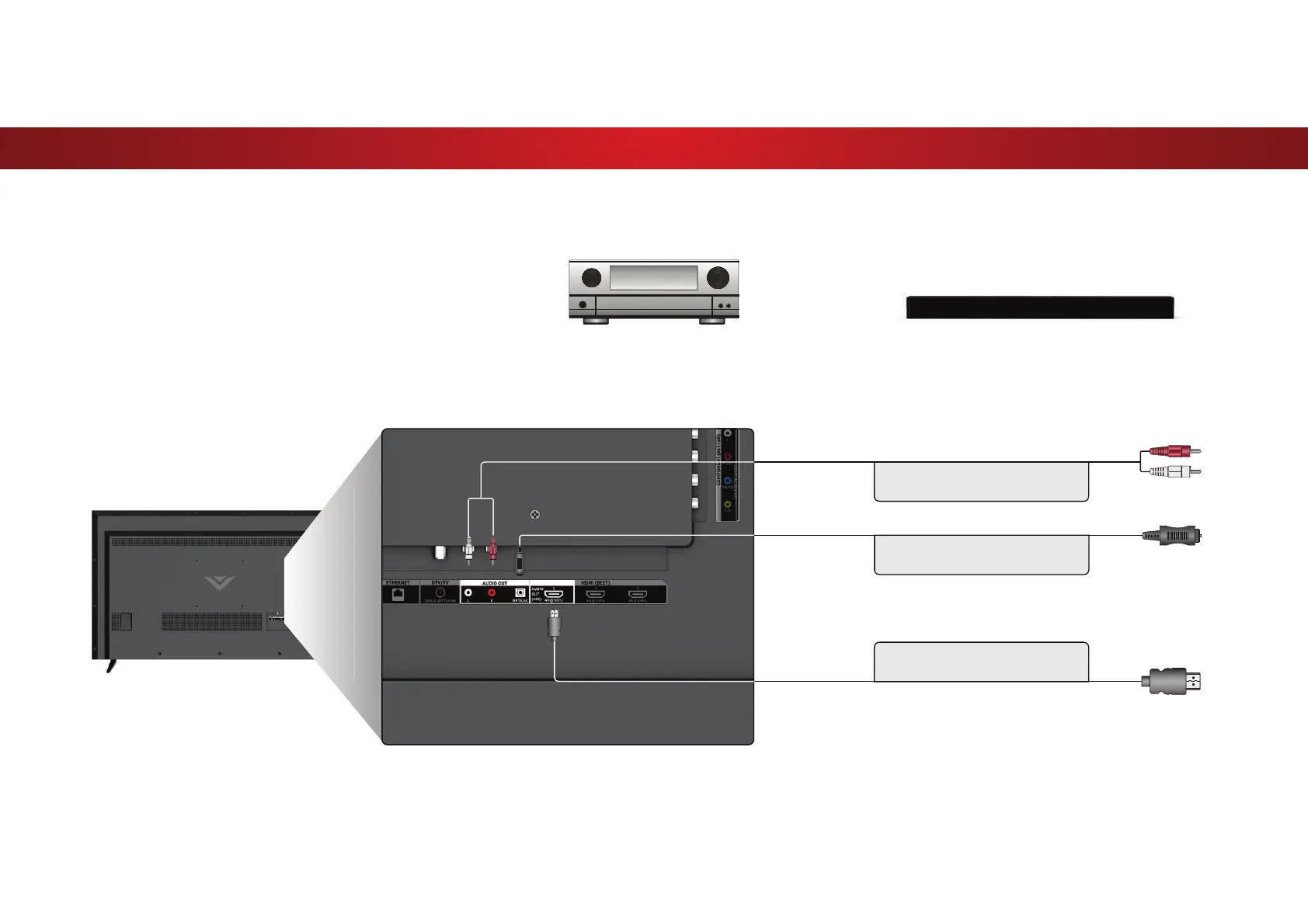 3. Connect the appropriate cable (not included) to the TV and the