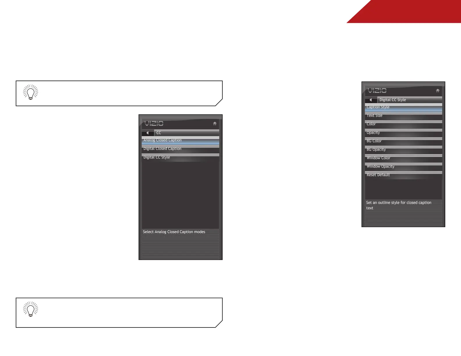• Analog Closed Caption for