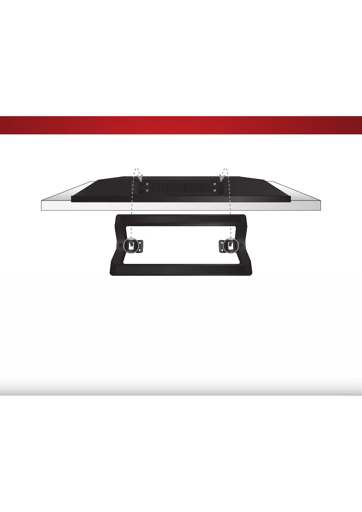 2. Align the stand and hook it into the bottom of the TV as shown.