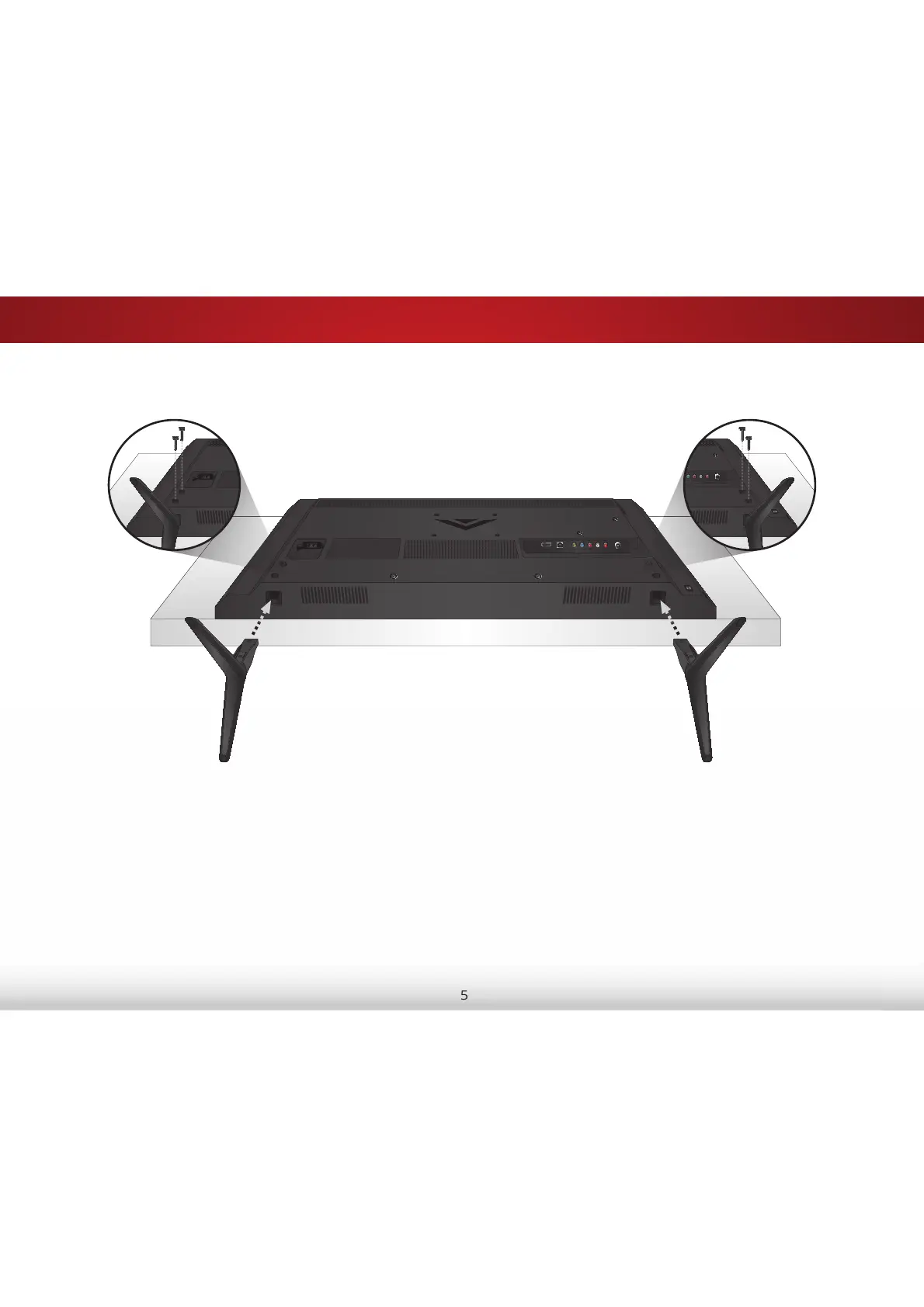 Insert the left and right stands into the base of the TV (the stands are identical).