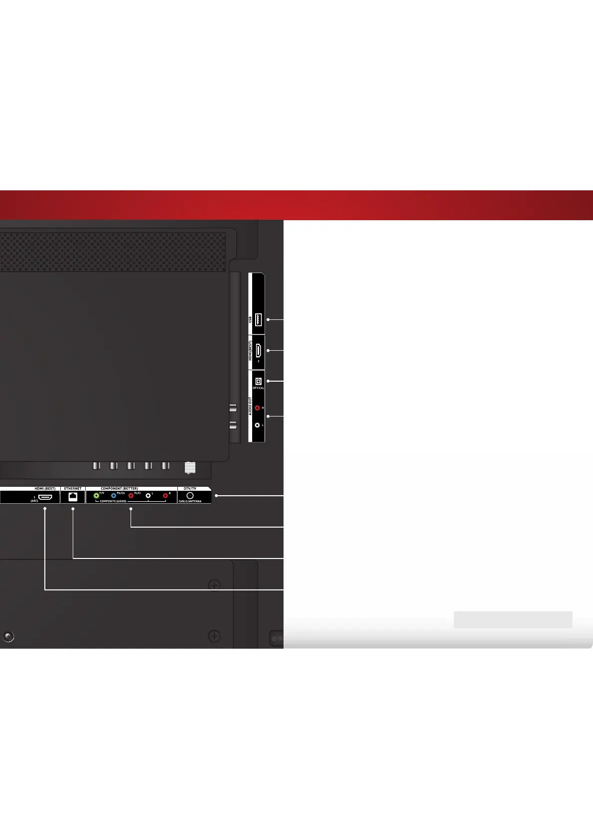 Stereo Audio Out - Connect an RCA audio device, such as sound bar.
