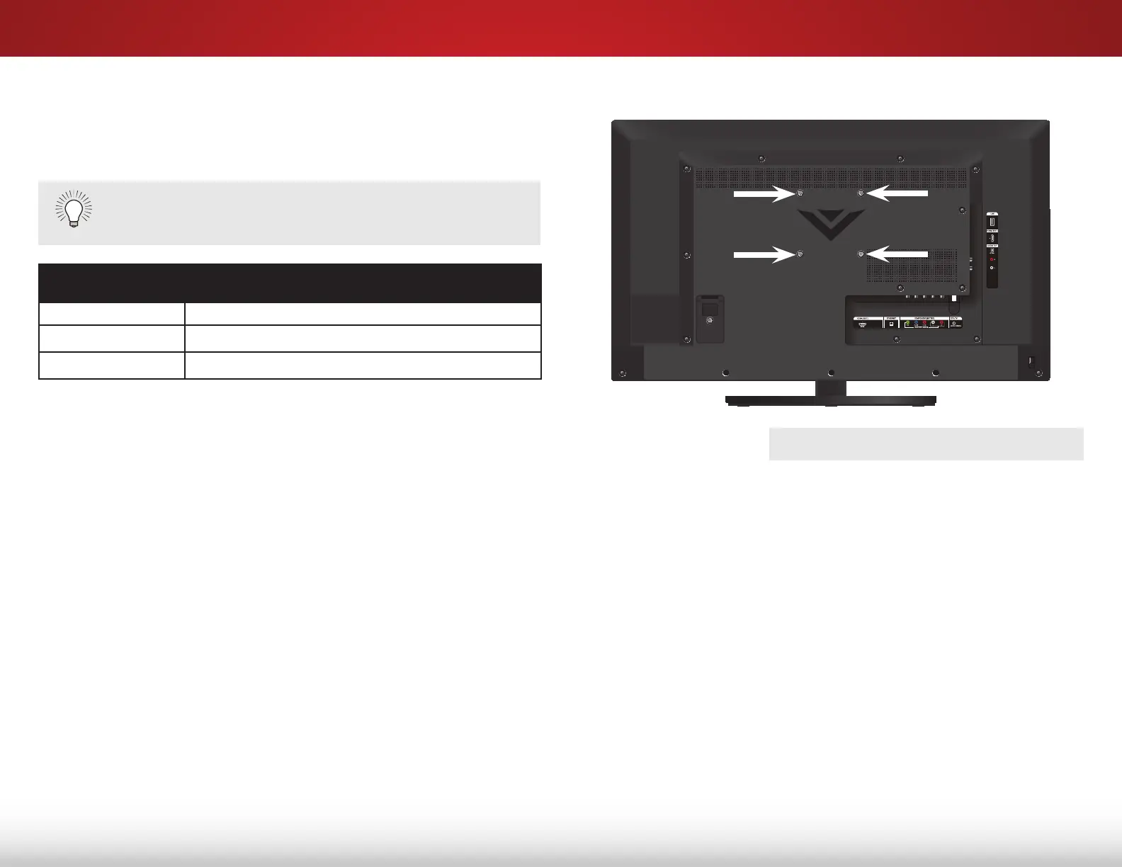 the information below to find the appropriate mount for your TV