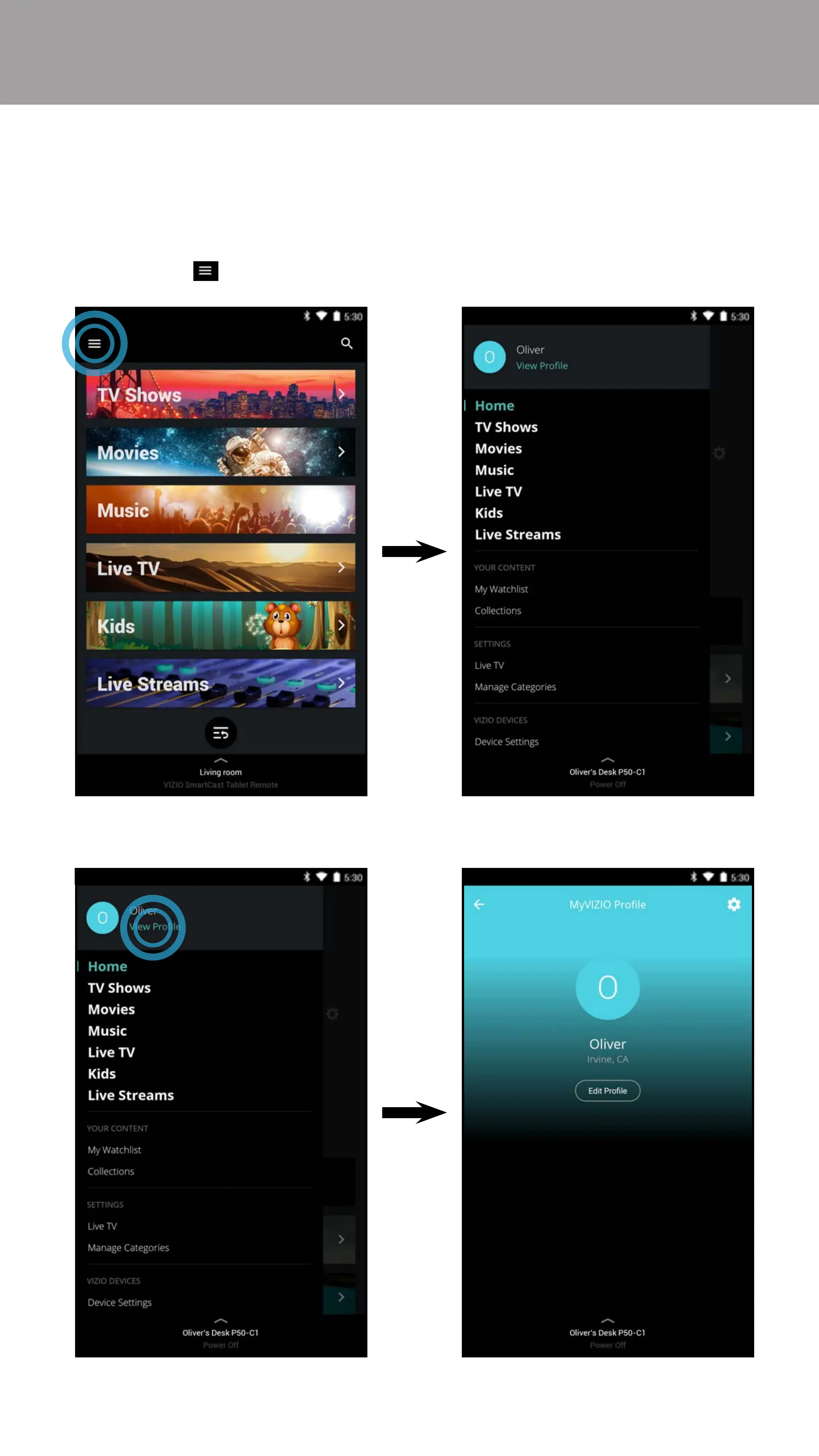 Every user can register their very own user prole (MyVIZIO, Facebook, or Google),