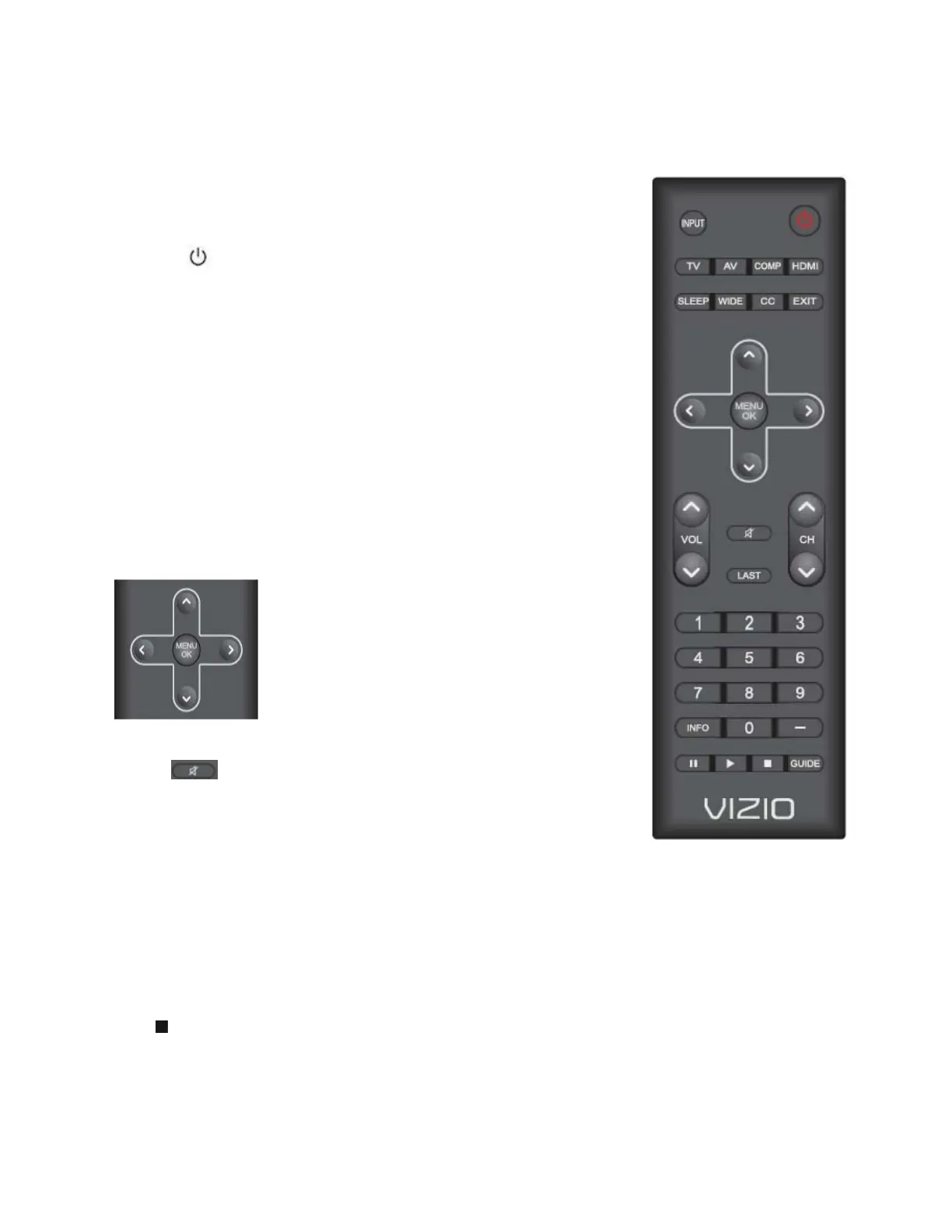 INPUT—Press to cycle through the various devices connected to your TV