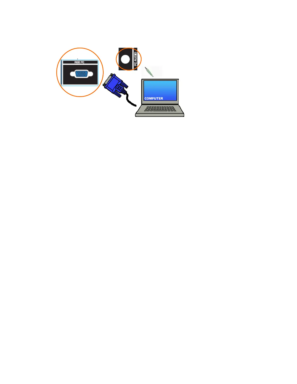 2. Connect a 15-pin D-Sub RGB (VGA) cable to the RGB output of your pc computer and the