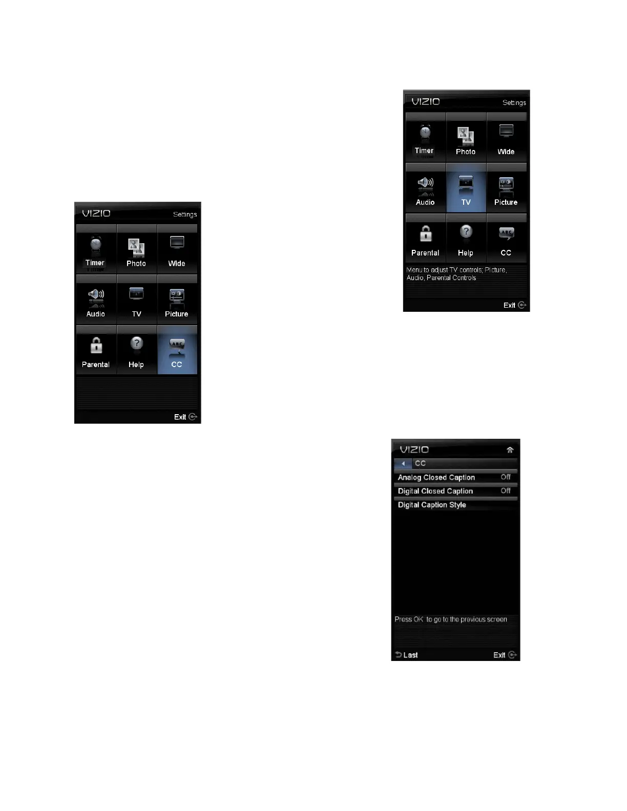 Adjusting the CC (Closed Caption) settings