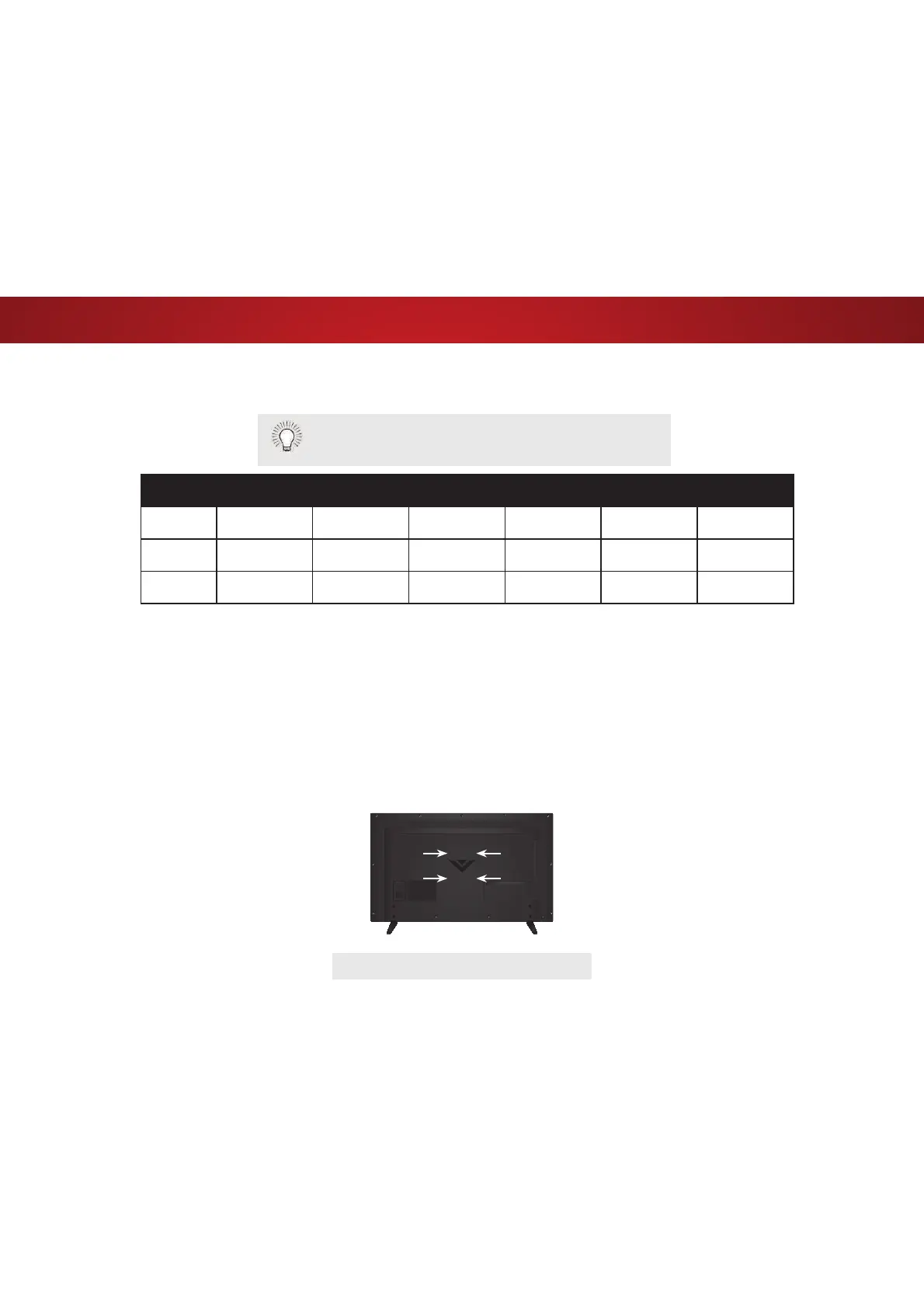 To mount your TV on a wall, you will need a ZDOOPRXQW&RQVXOWWKHLQIRUPDWLRQEHORZWRȴQGWKHDSSURSULDWHPRXQWIRU\RXU79PRGHO
