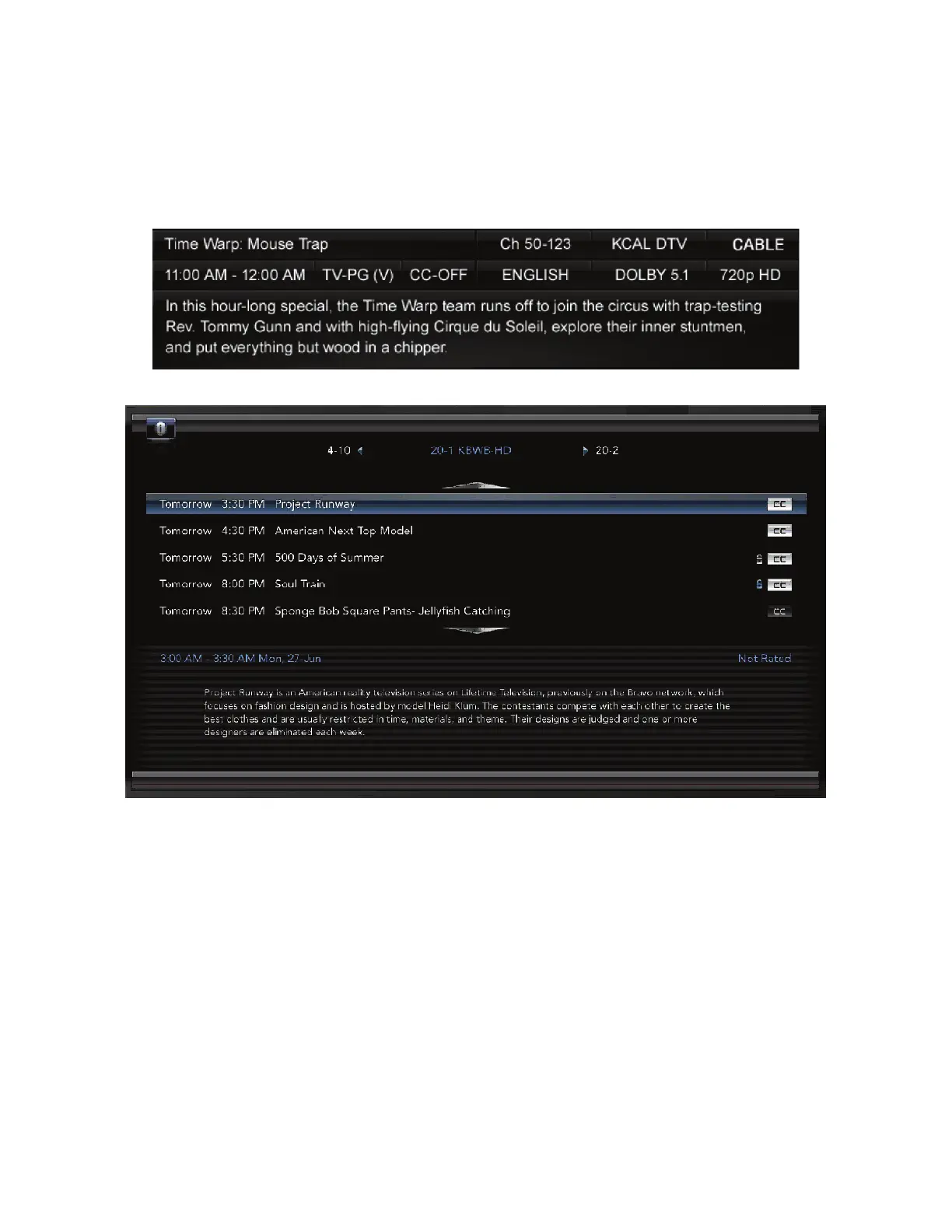 the picture for a few seconds. Each press of the GUIDE button will display more information about the