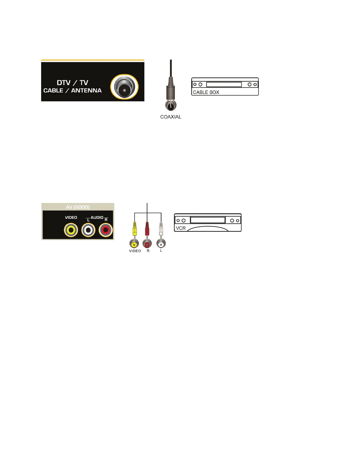 2. Connect the coaxial (RF) connector from your antenna or cable to the DTV/TV