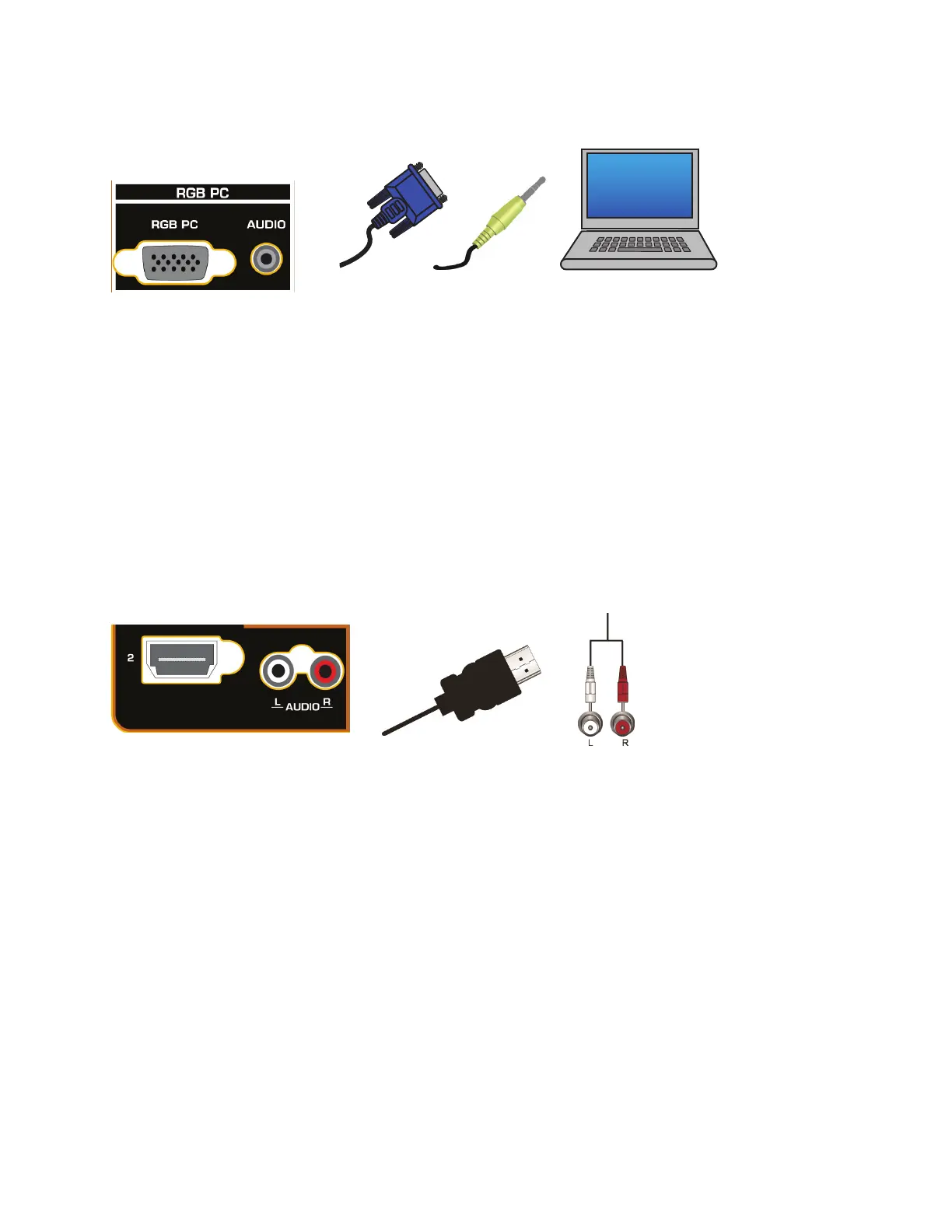 3. Connect the RGB (VGA) cable from your computer to the RGB PC jack on of your HDTV.