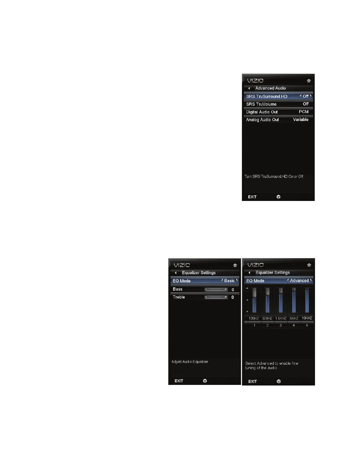 Note: The Equalizer adjustment will only be available when SRS TSHD is set to Off.