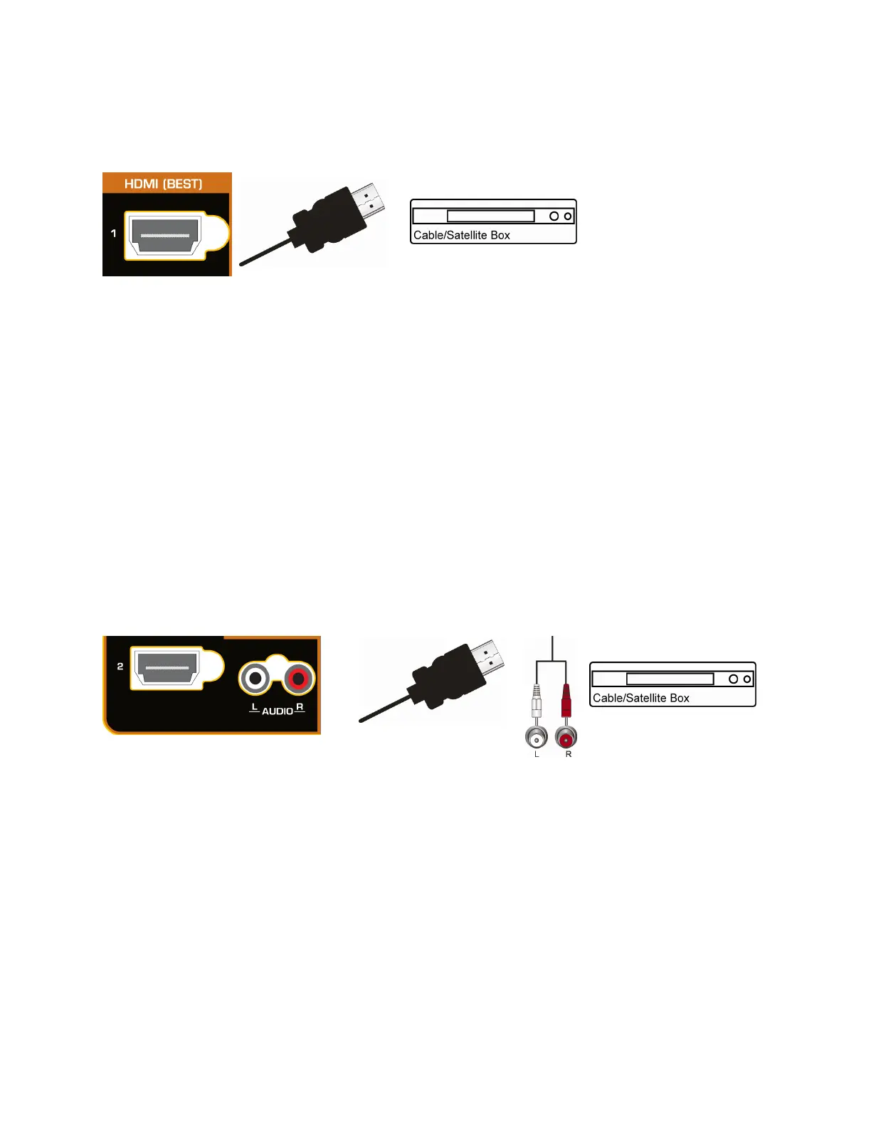 Cable and Satellite Boxes that have a HDMI digital interface should be connected using HDMI for optimal