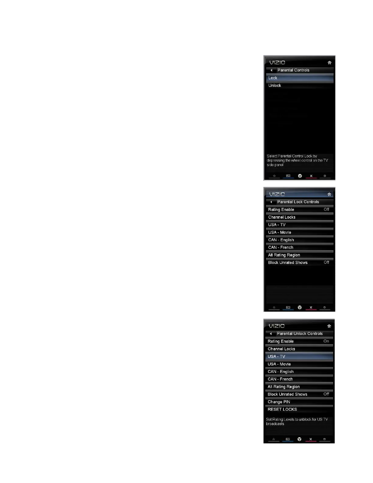 Note: The Parental Controls are divided into LOCK and UNLOCK
