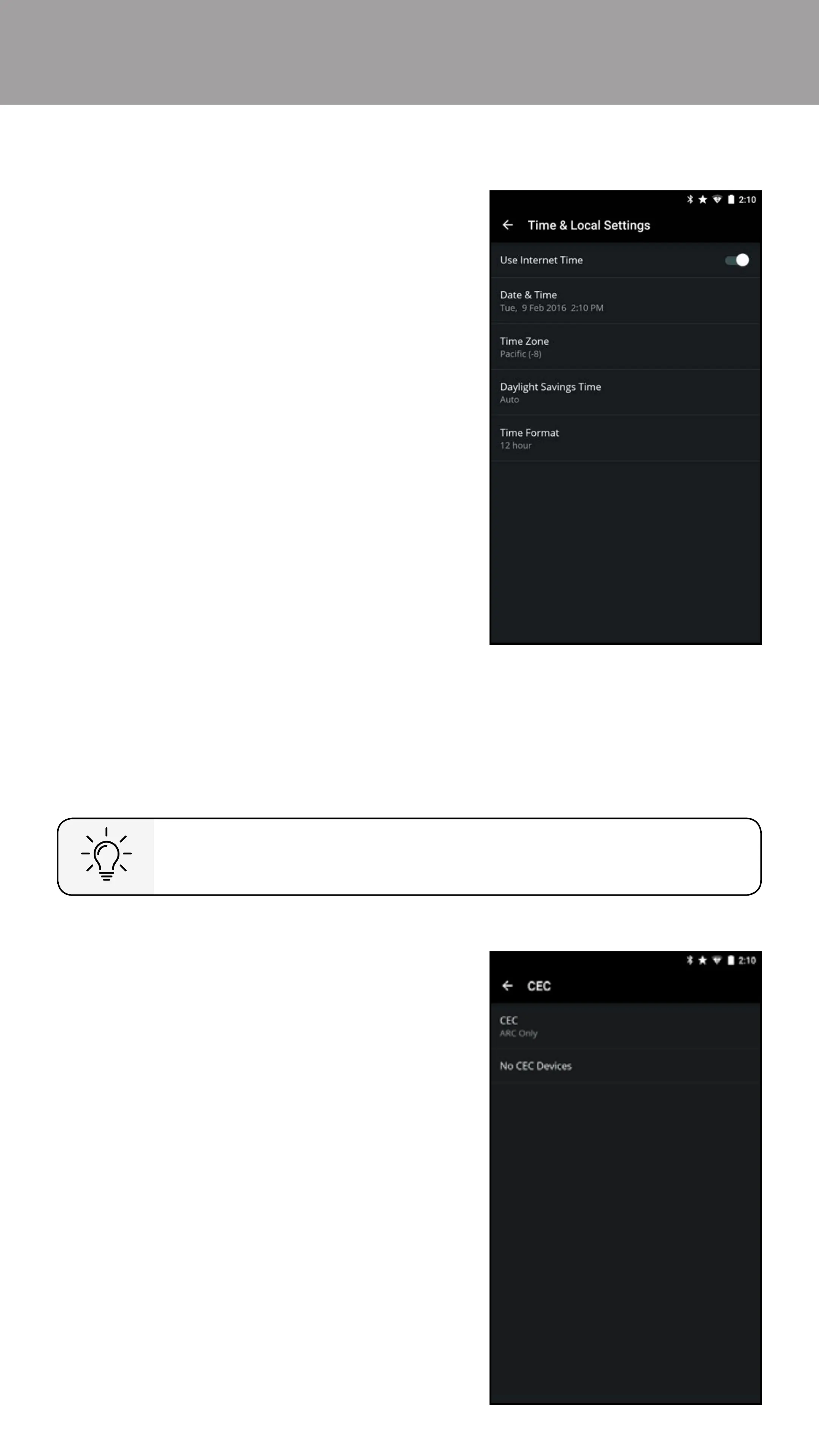 1. From the System menu, tap CEC.
