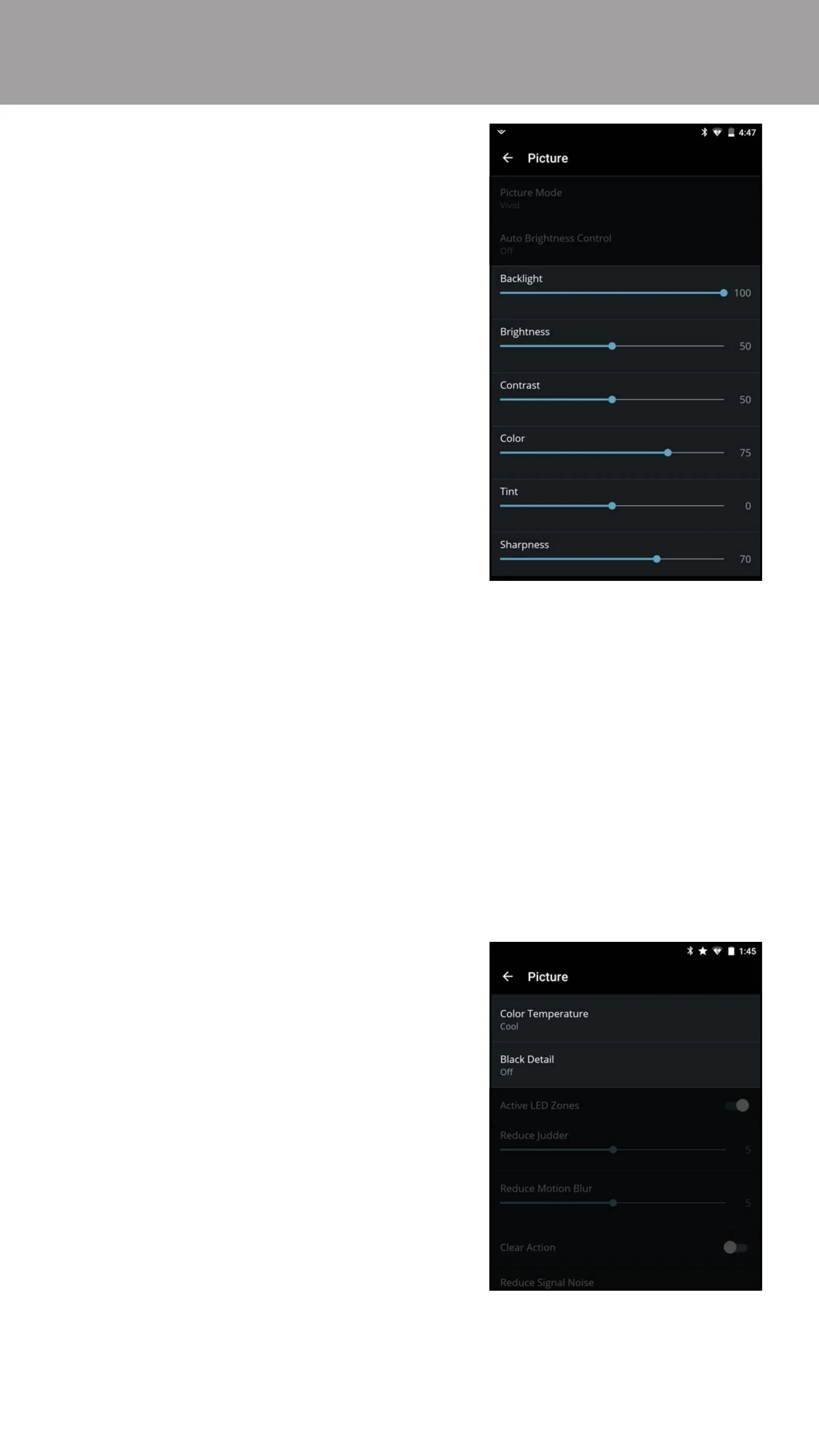 • Adjusts the hue of the picture. This setting is useful in adjusting the