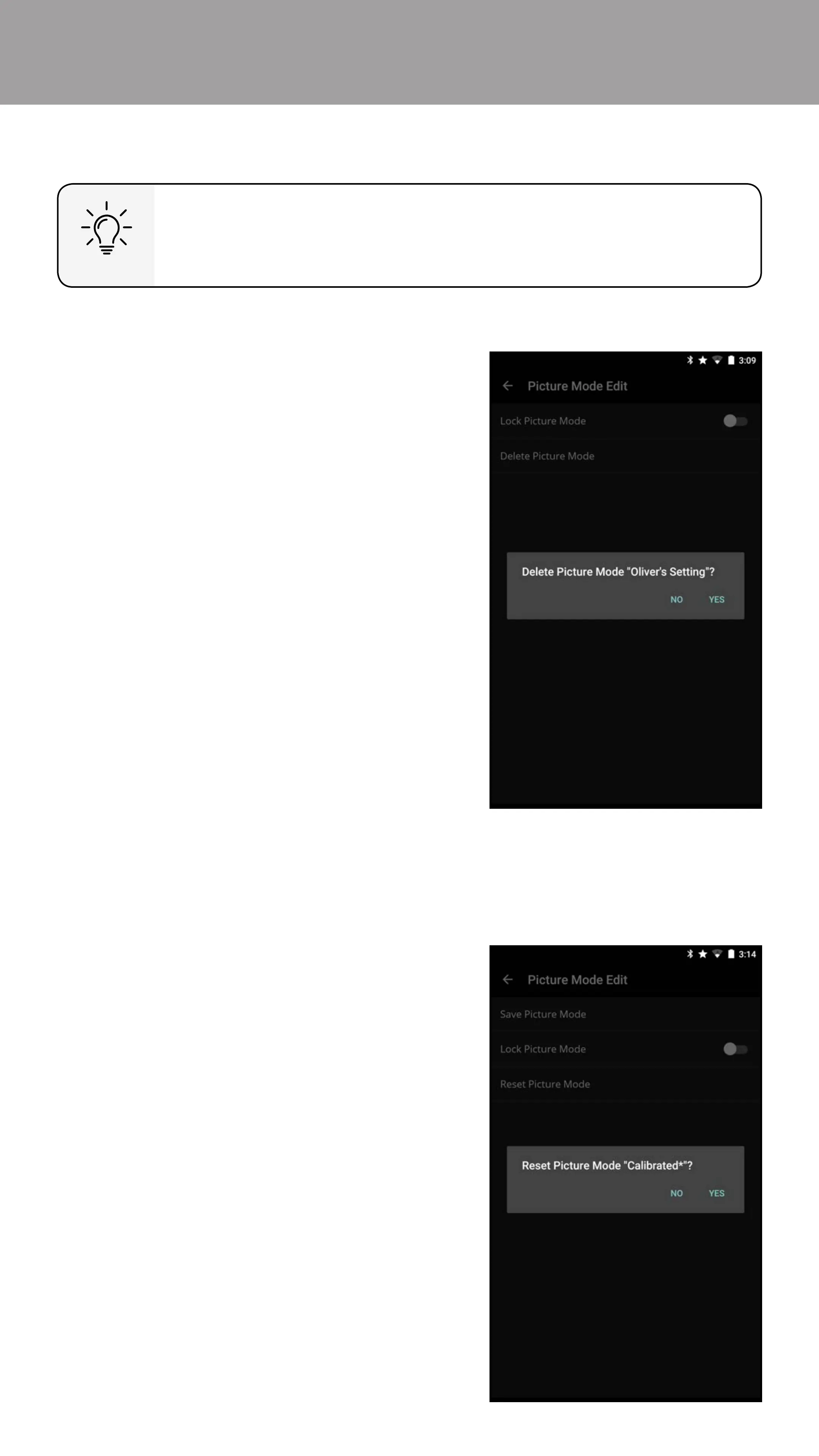 Reset the picture mode settings (for a preset picture mode) to the factory