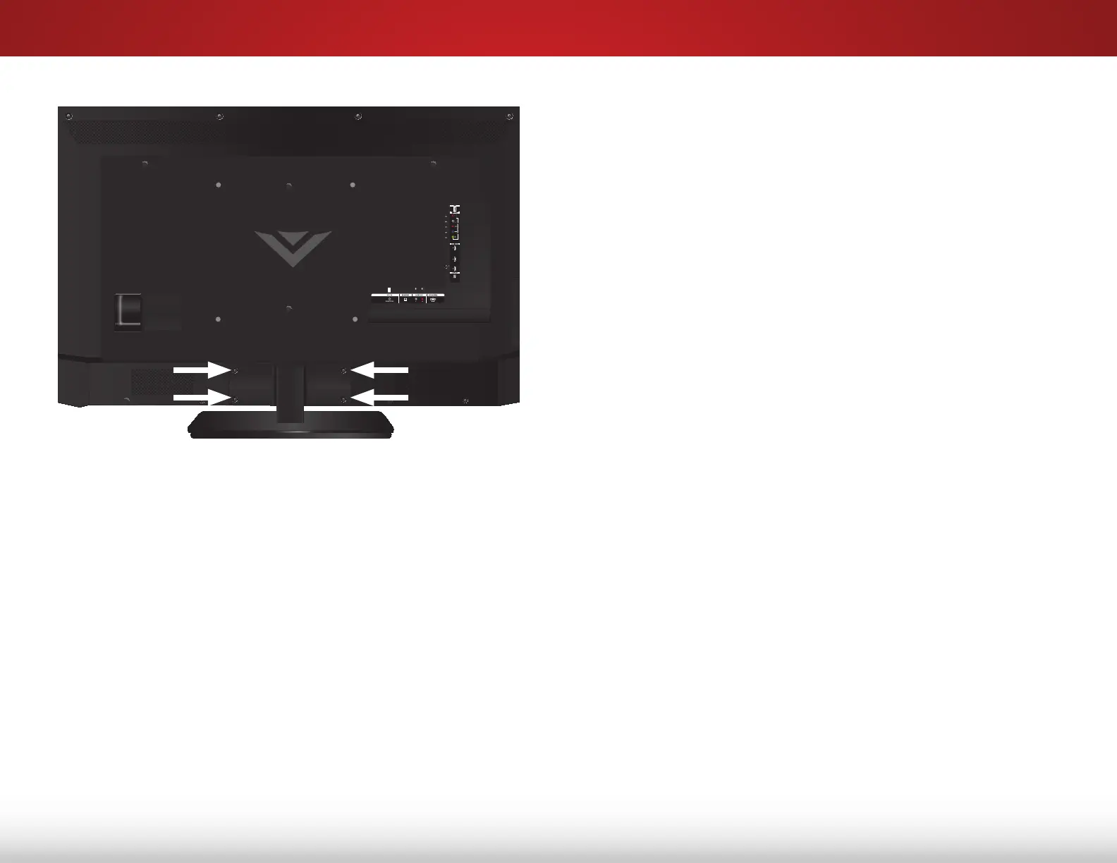 four(4) Phillips screws into the back of the TV as shown.